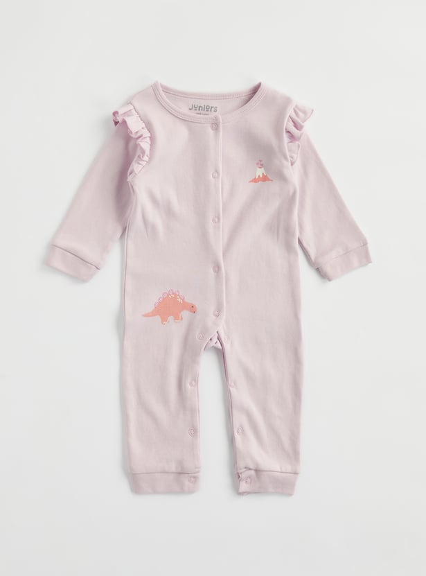 Soft hues and sweet animal prints make this Juniors animal print sleepsuit and romper set a cosy everyday pick. The sleepsuit features a round neckline, full sleeves, and a button closure, while the romper comes with short sleeves and a comfortable fit for easy movement. Made from soft, breathable fabric that feels gentle on delicate skin.