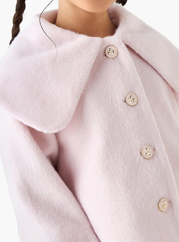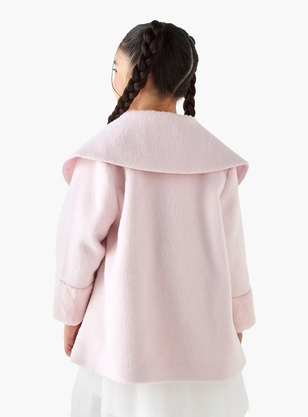 Juniors Solid Peter Pan Collar Coat with Long Sleeves