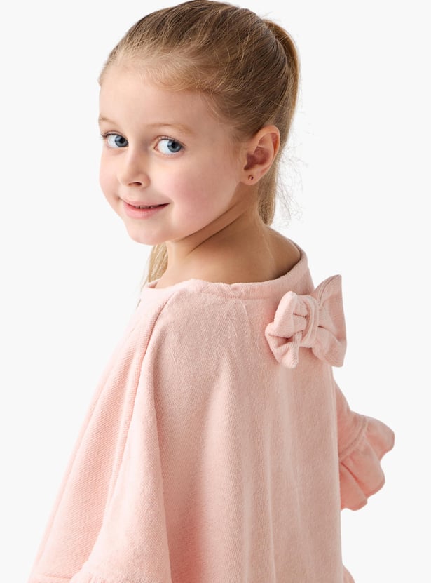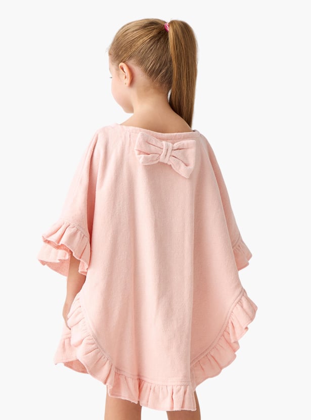 Juniors Solid Terry Poncho Bathrobe with Bow Applique