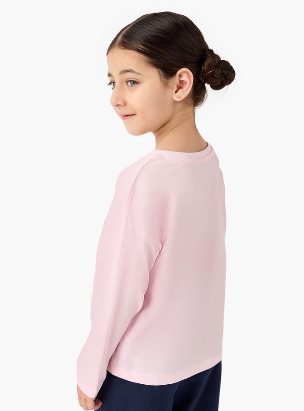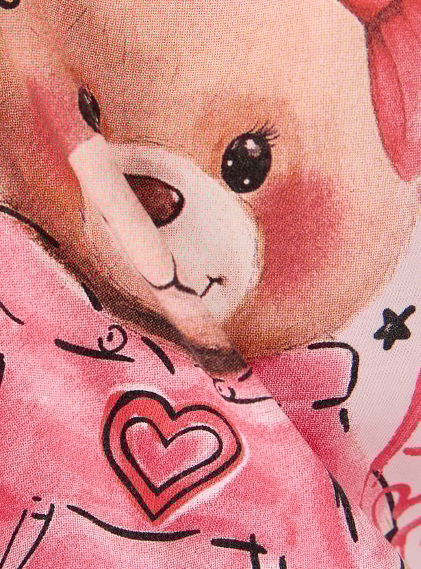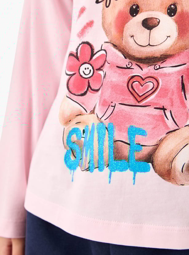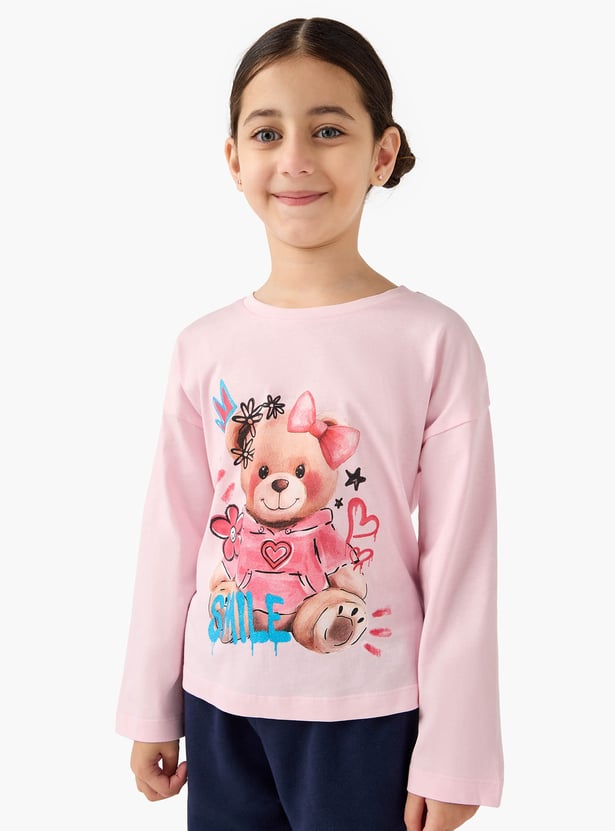 Juniors Teddy Bear Print T-shirt with Long Sleeves