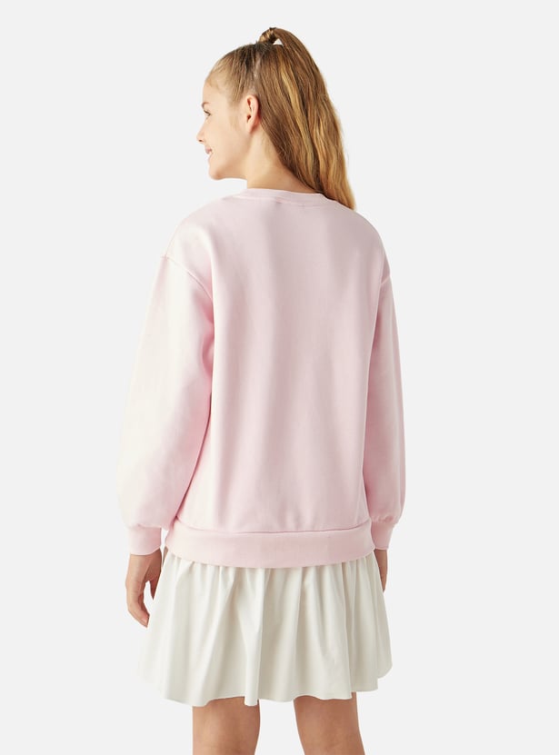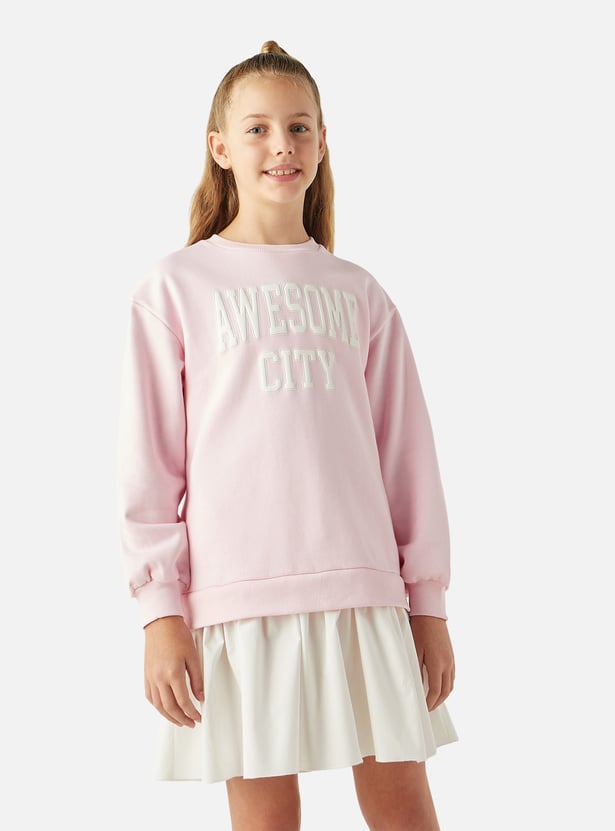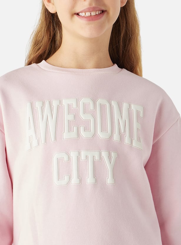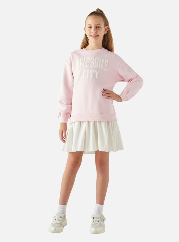 Juniors Typographic Detail Sweat Dress with Long Sleeves