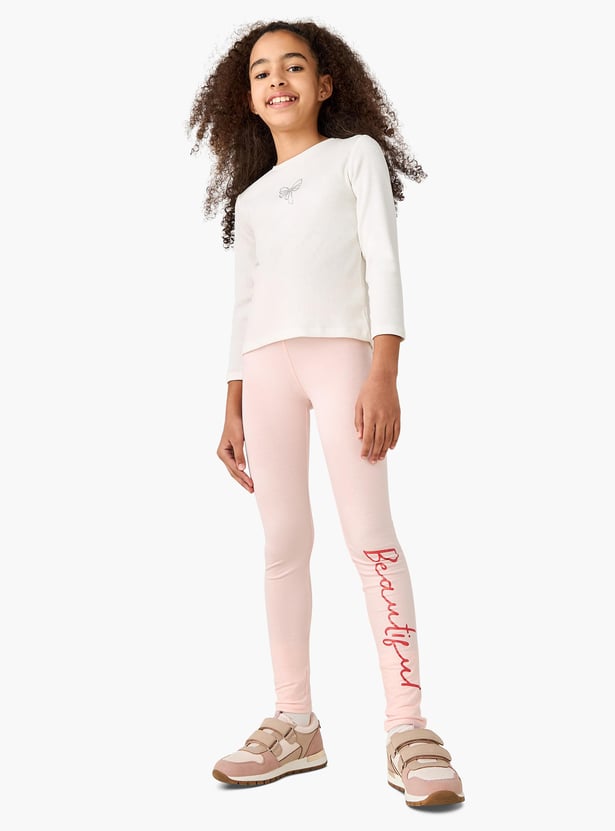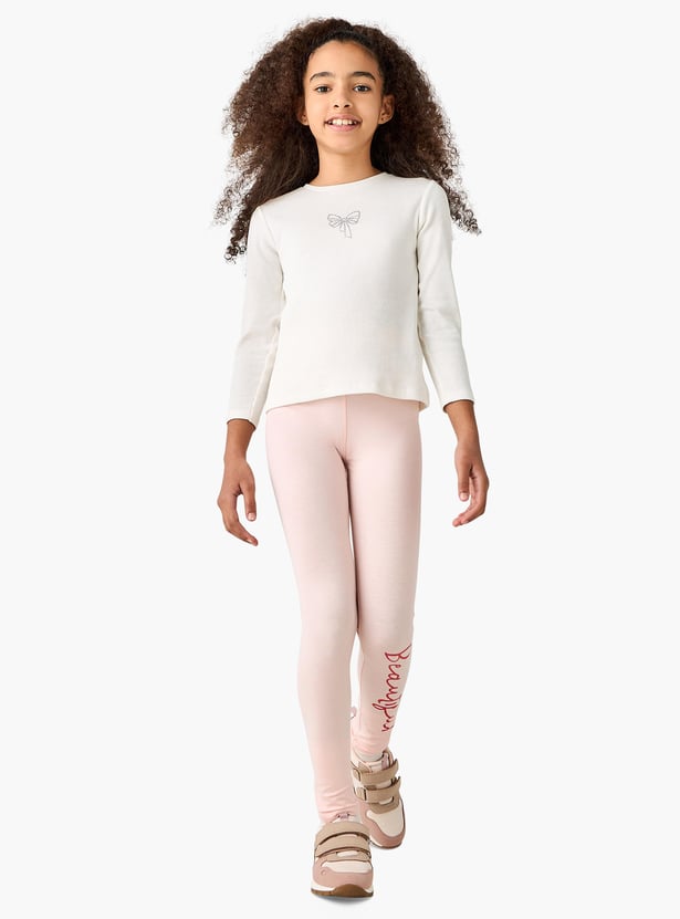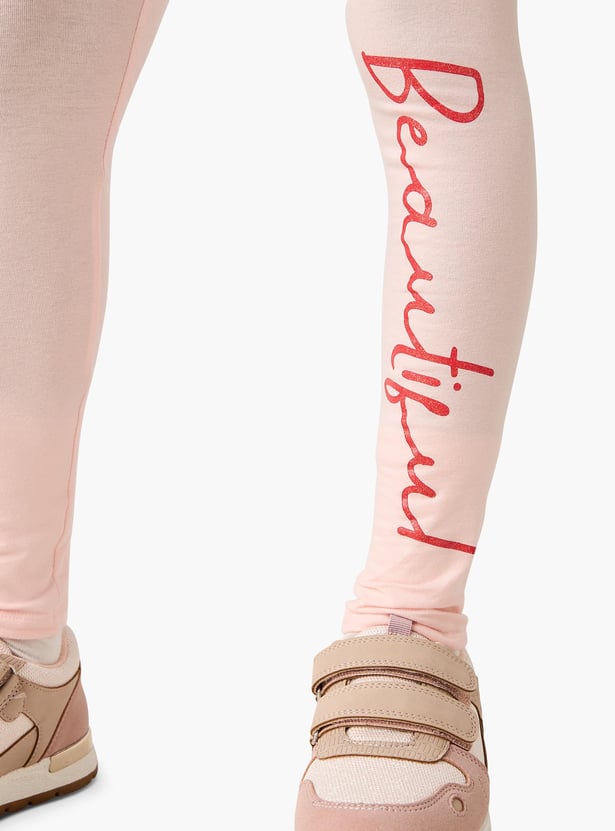 Juniors Typographic Print Leggings with Elasticated Waistband