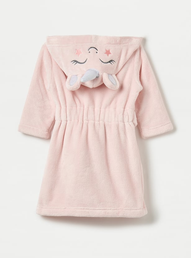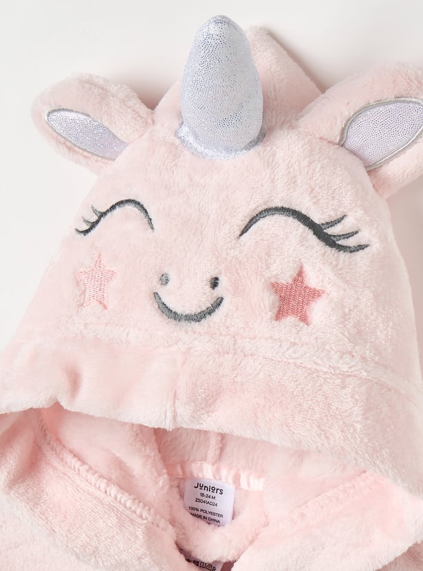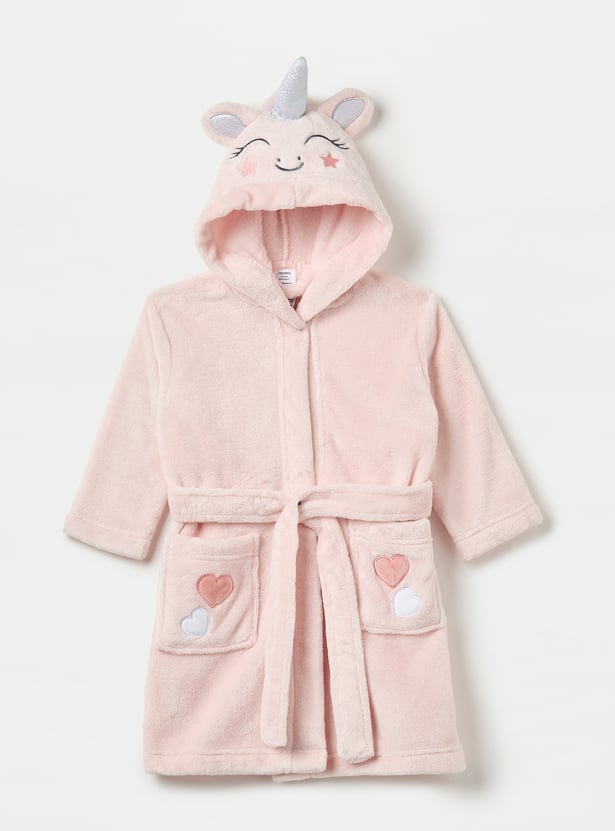 Juniors Unicorn Applique Hooded Bathrobe with Belt and Pockets