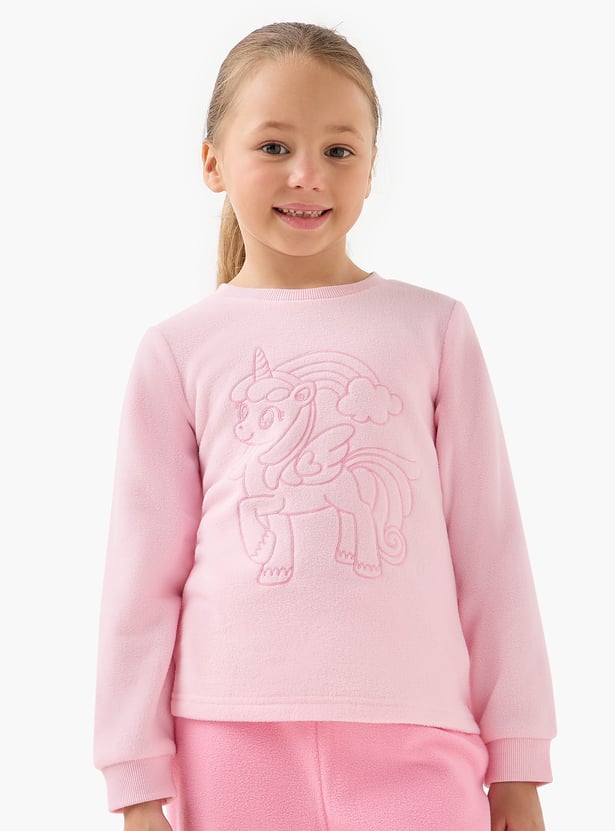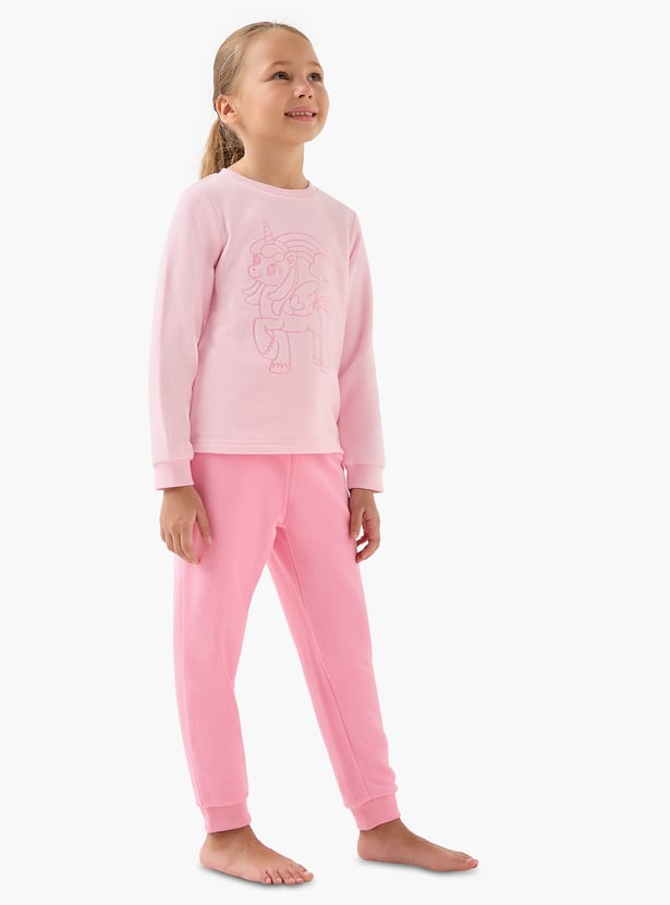 Juniors Unicorn Embroidered Fleece T-shirt and Pyjama Set