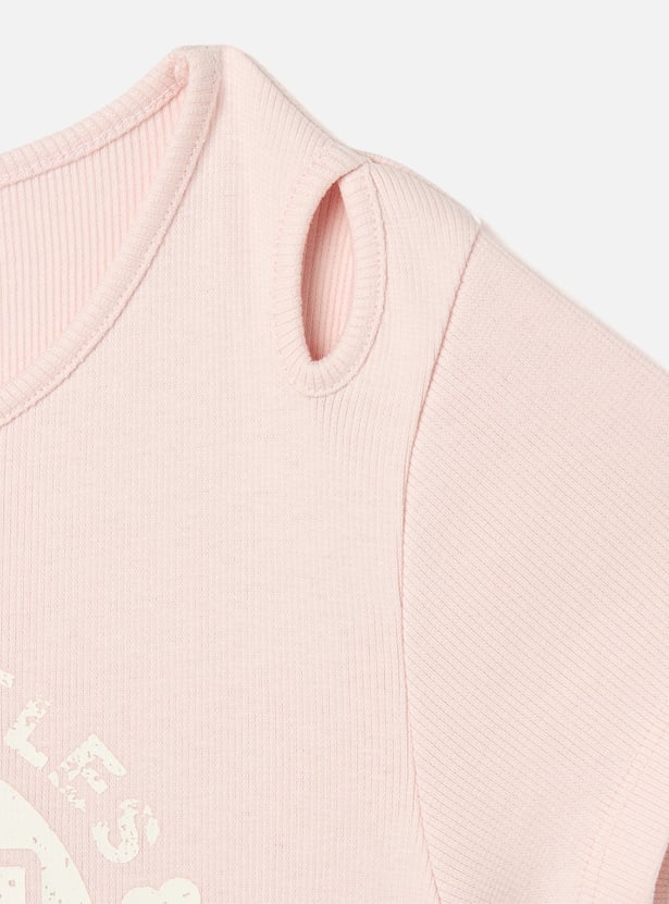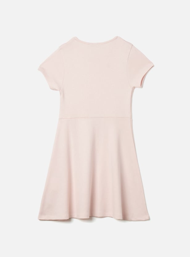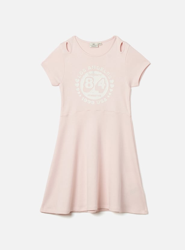Juniors Varsity Print A-Line Dress with Cut-Out Detail