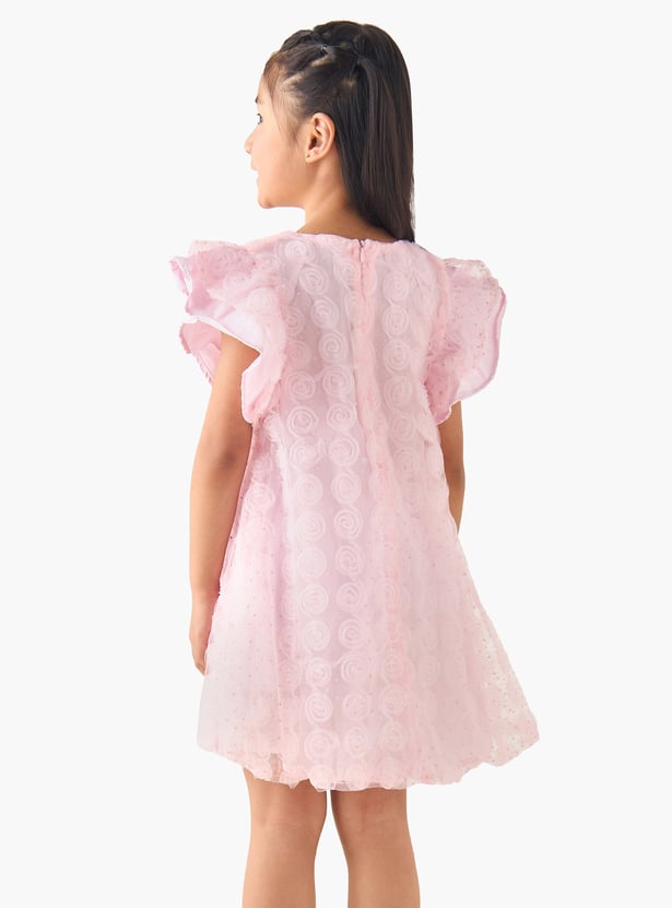 Adorn your little one in this charming rose mesh dress, perfect for special occasions. This elegant girls' dress features delicate rose detailing across the fabric, offering a sophisticated and playful aesthetic. The comfortable fit ensures ease of movement, allowing for hours of joyful play.
