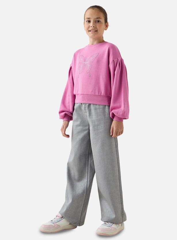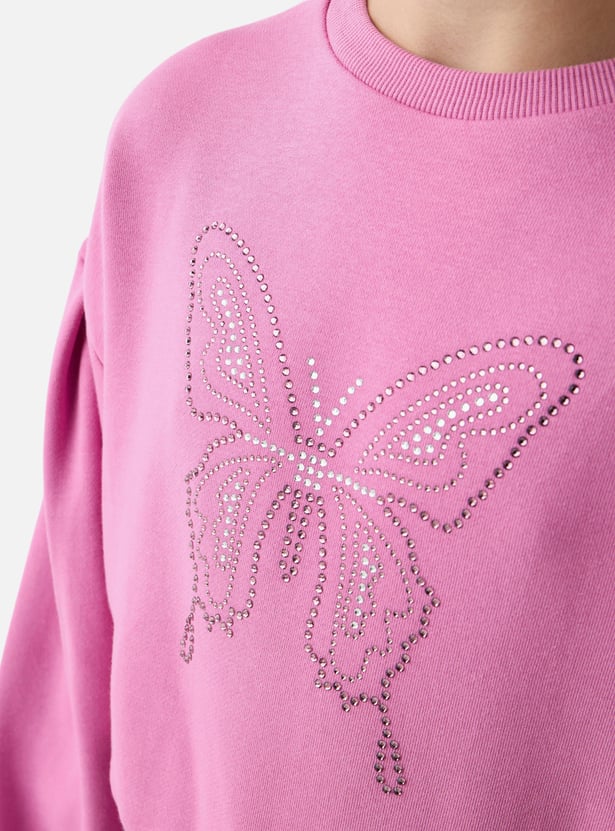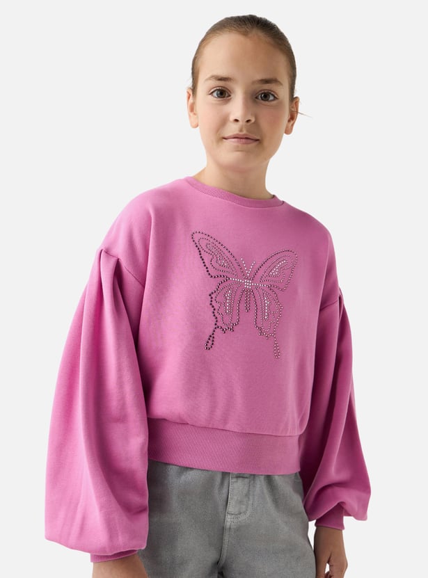 Juniors Butterfly Embellished Sweatshirt with Volume Sleeves