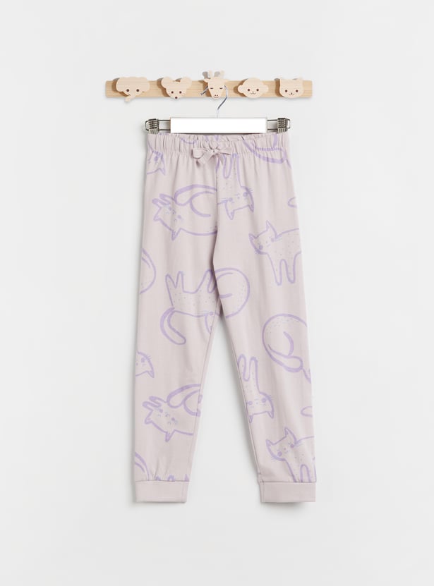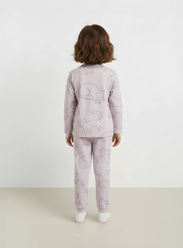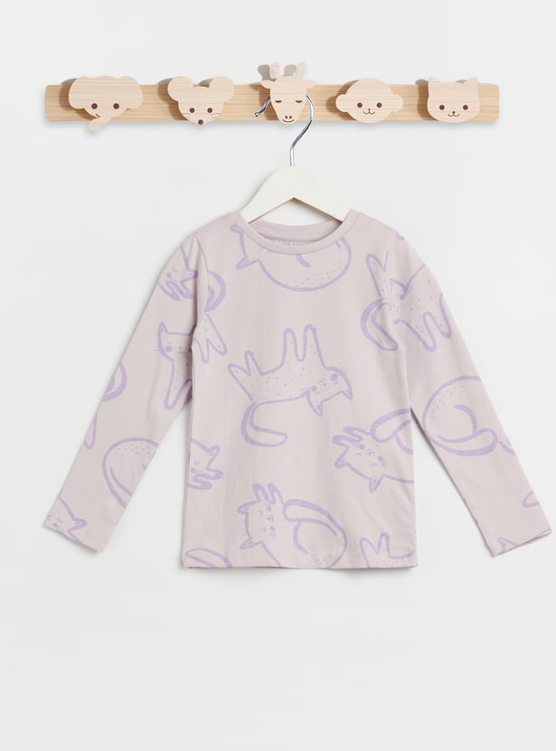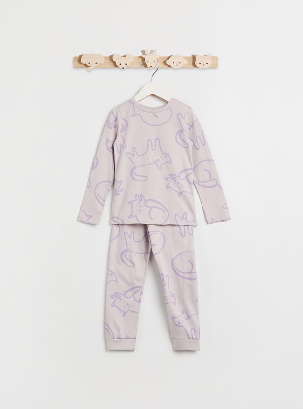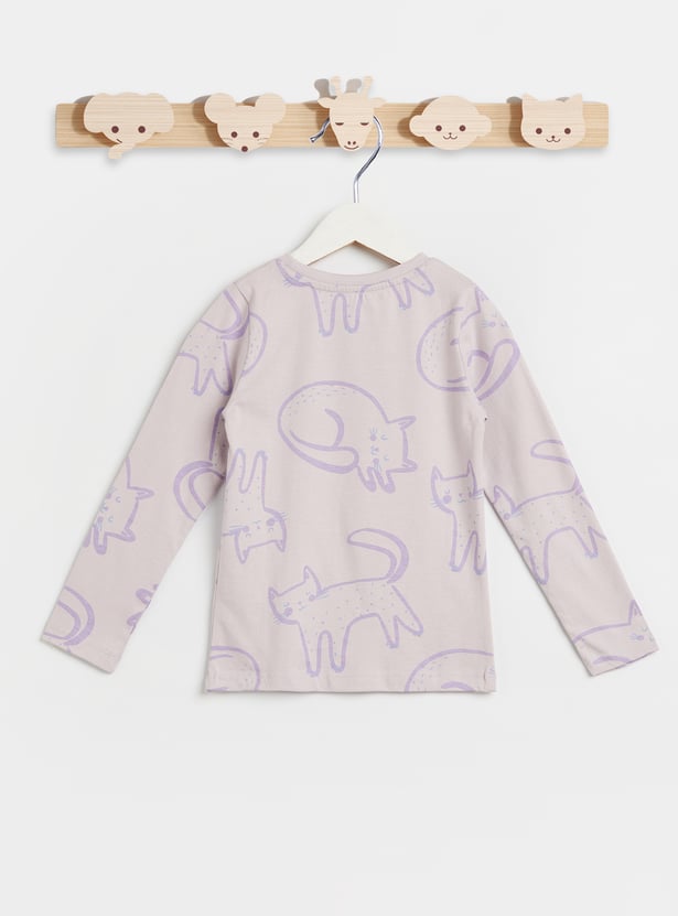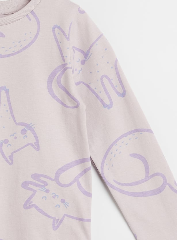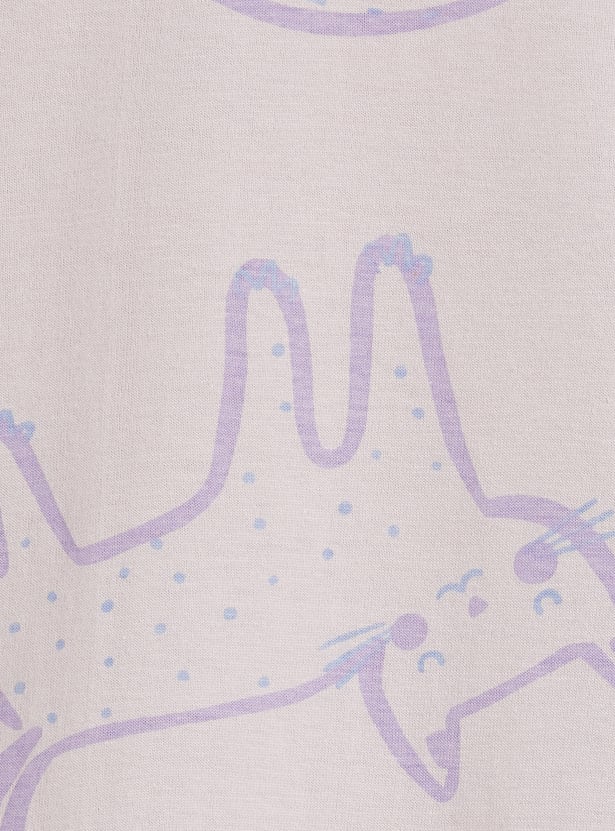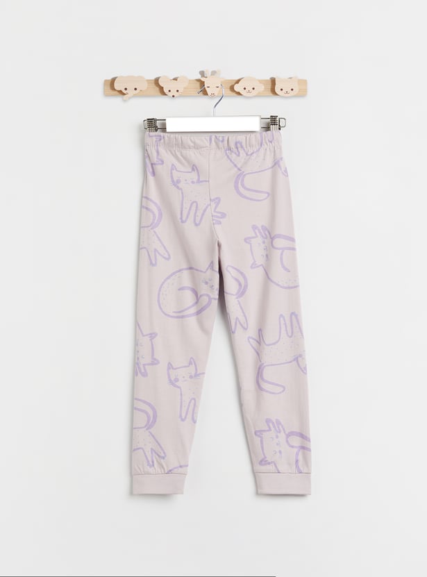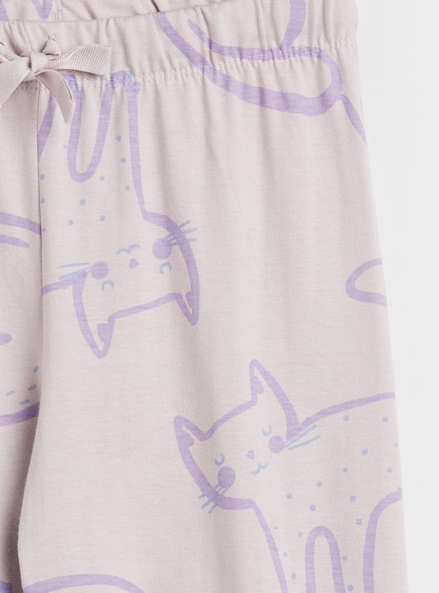 Keep your little one comfy and stylish with this cat printed t-shirt and pyjama set. The t-shirt features a fun all-over cat print with a classic round neckline and short sleeves, ensuring ease of wear and a playful touch. Paired with soft, elasticated pyjamas, this set offers both comfort and flexibility, making it perfect for sleep, lounging, or relaxed playtime. Crafted from breathable fabric, it ensures all-day comfort while keeping your child looking adorable.
