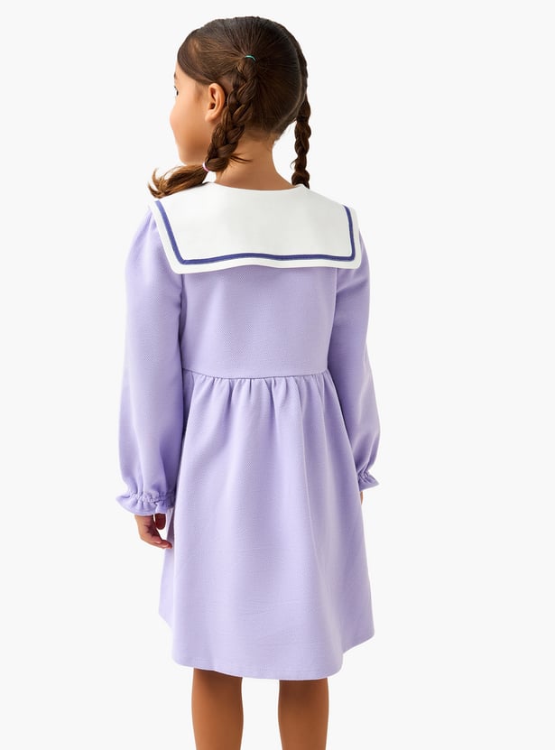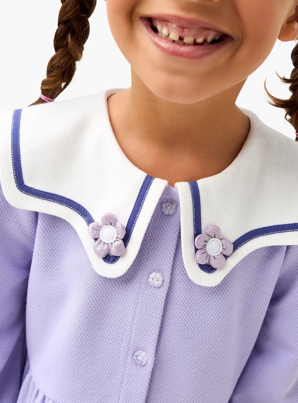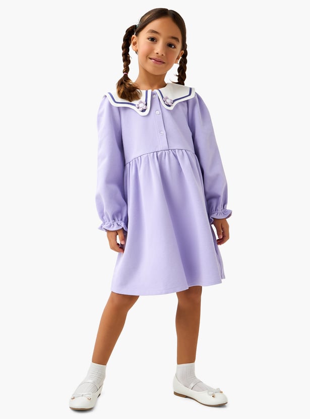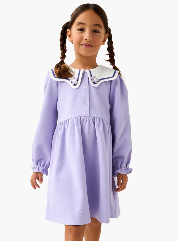 Juniors Floral Applique A-line Dress with Sailor Collar