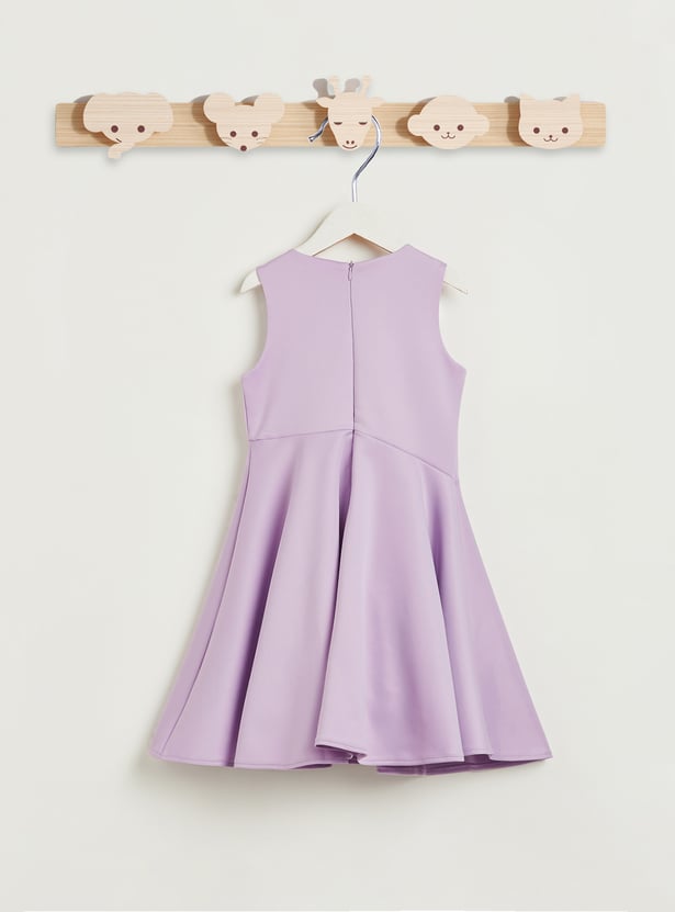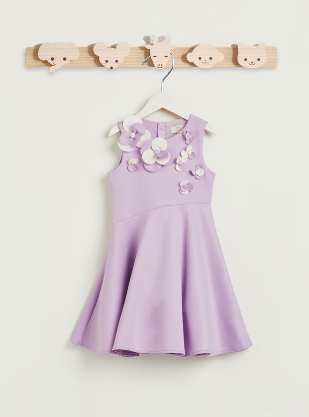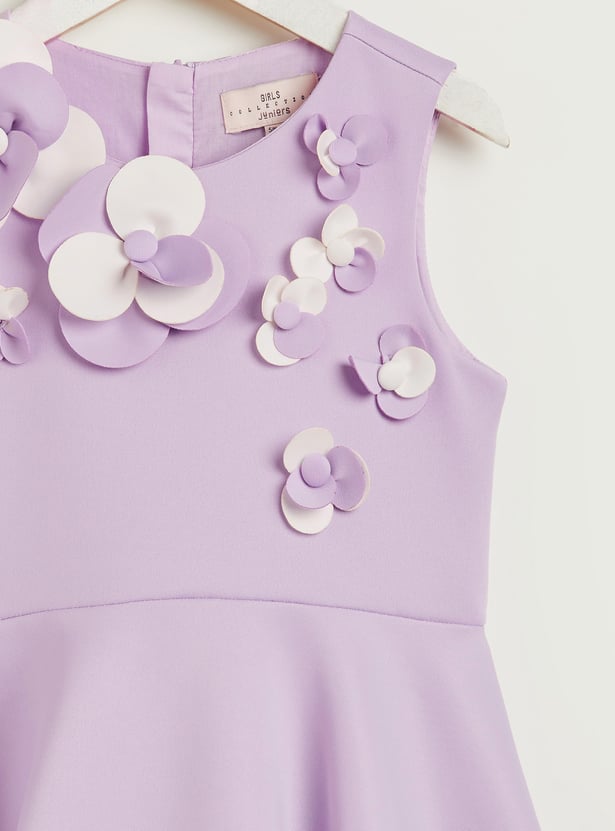 Juniors Floral Applique Sleeveless Dress with Round Neck