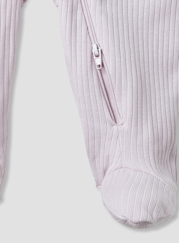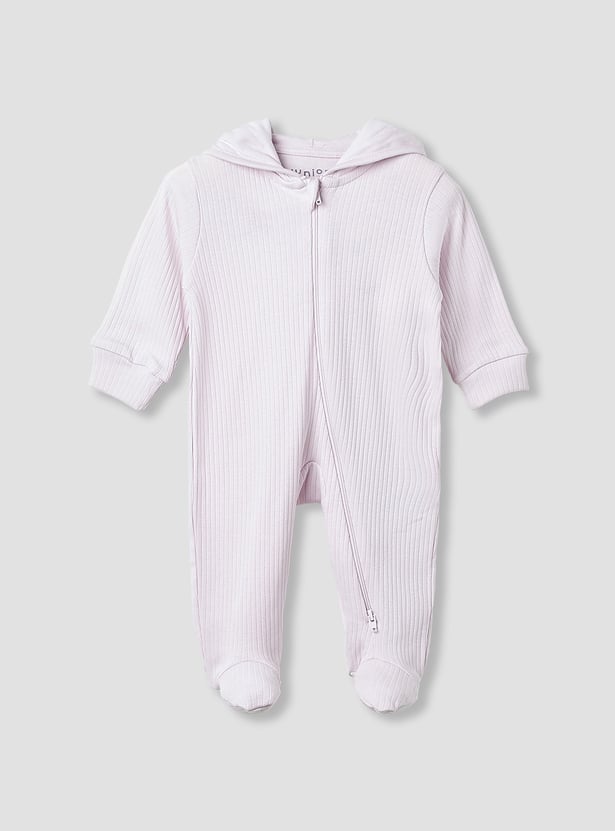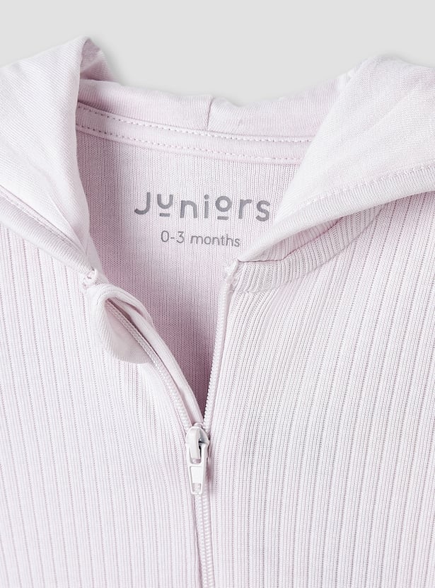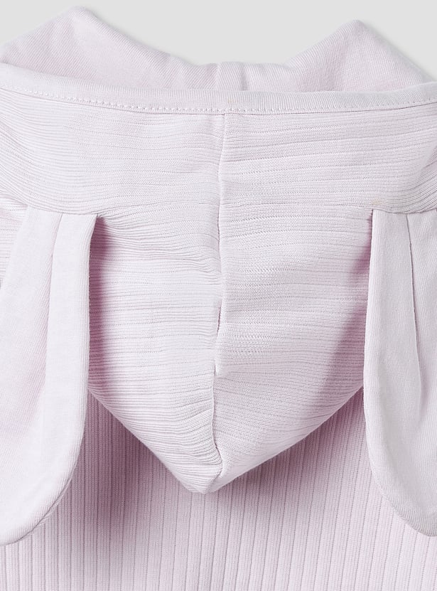Snuggle up in style with this ribbed sleepsuit featuring adorable movable ear accents on the hood. Made from soft, breathable fabric, it ensures all-night comfort and warmth. The long sleeves provide extra cosiness, while the convenient zip closure makes dressing easy. The playful ears add a fun and cute touch that your little one will love. Perfect for bedtime, lounging, or everyday wear.