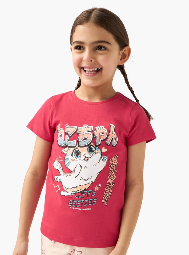 Let your girl's dreams take flight with this t-shirt and pyjama set. Designed specifically for girls, this enchanting sleepwear set combines comfort and whimsy with its delightful print. Perfect for cosy nights and magical mornings, this set is sure to become a bedtime favourite. Whether she's lounging or drifting into dreamland, this t-shirt and pyjama duo offers the perfect blend of style and comfort.