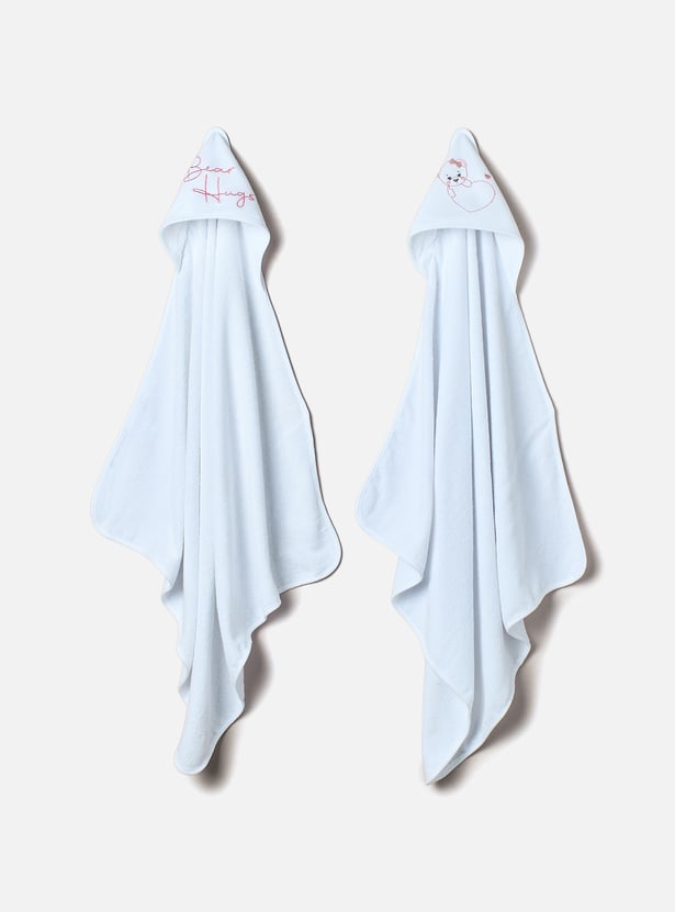 Wrap your little one in comfort and adorableness with these hooded towels. Crafted from soft and absorbent fabric, these hooded towels ensure a cosy and dry experience after bath time. These two towels feature a charming bear detail to delight your child. The generous size provides ample coverage.