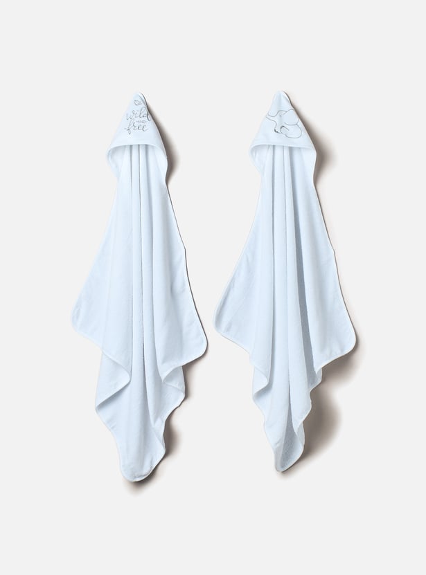 Juniors 2-Piece Embroidered Hooded Towel Set - 80x80 cm