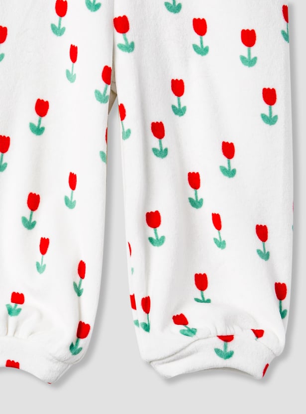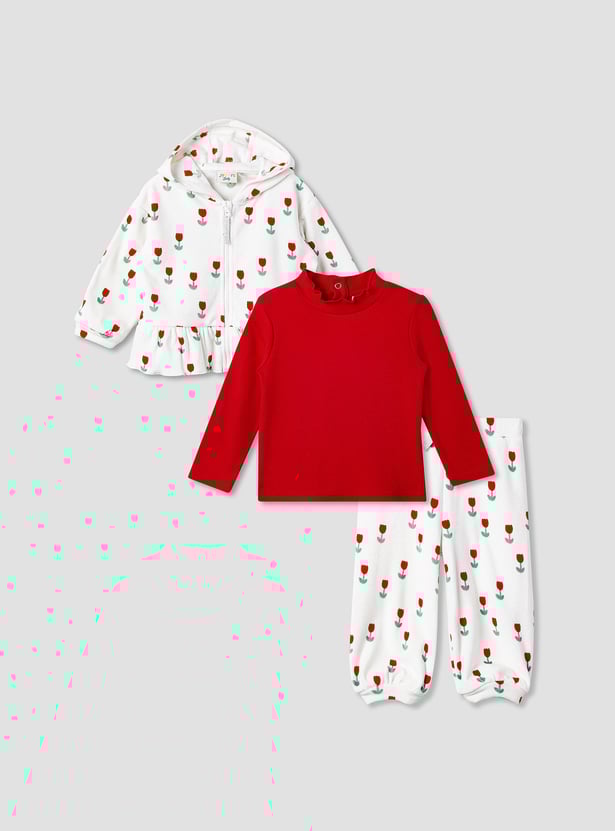 Juniors 3-Piece Floral Print T-shirt with Hoodie and Joggers