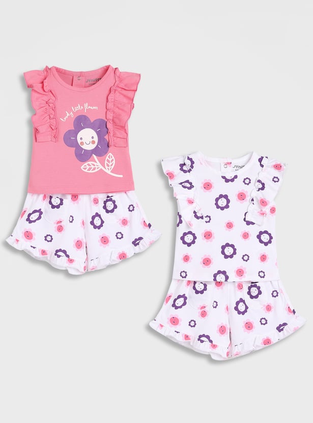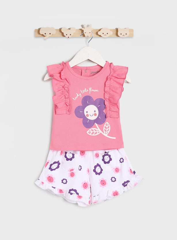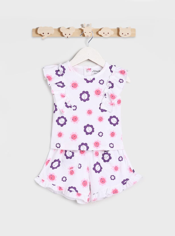 Juniors All Over Printed 3-Piece T-shirt and Shorts Set