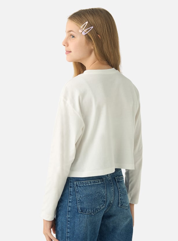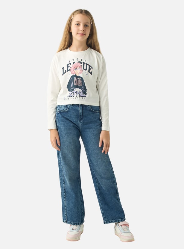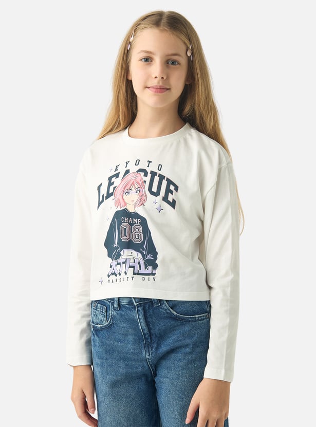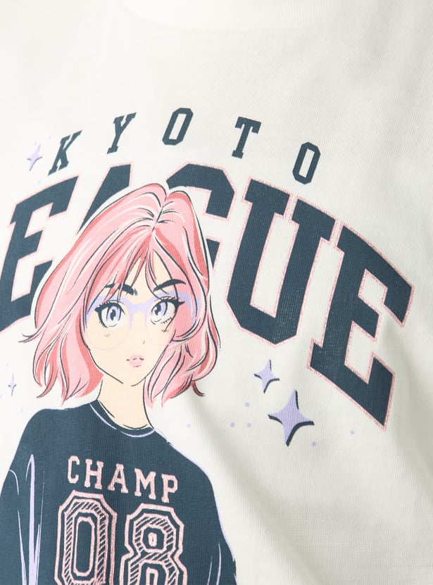 Juniors Anime Print Round Neck T-shirt with Long Sleeves