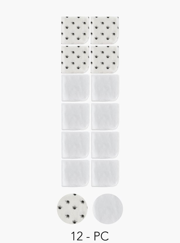 This set of twelve washcloths offers exceptional softness and absorbency for gentle cleansing. The set includes an assortment of solids and printed pieces, providing variety for everyday use. Crafted from soft, durable material, these washcloths are perfect for delicate baby skin.