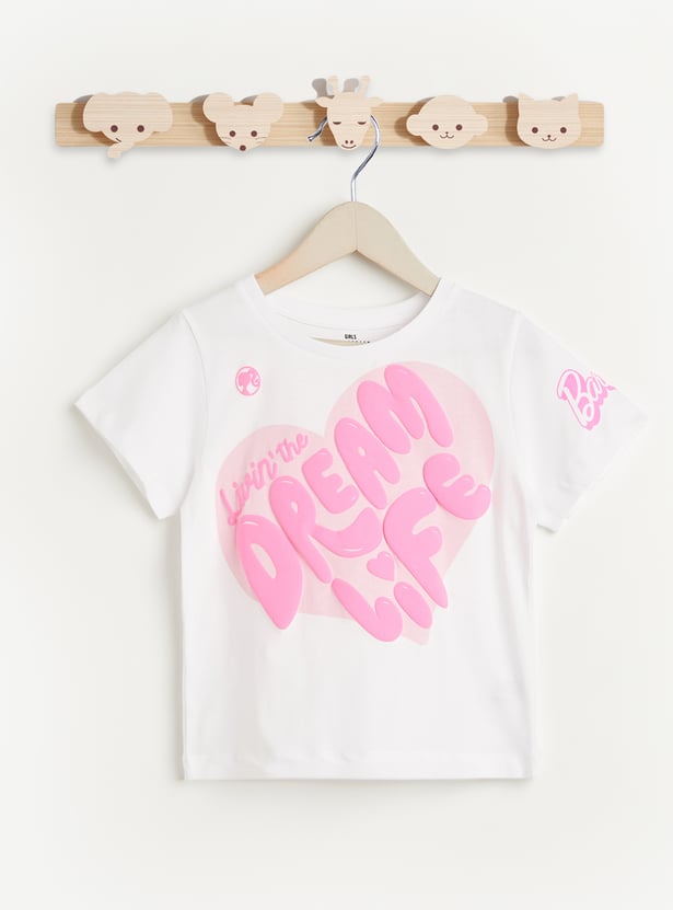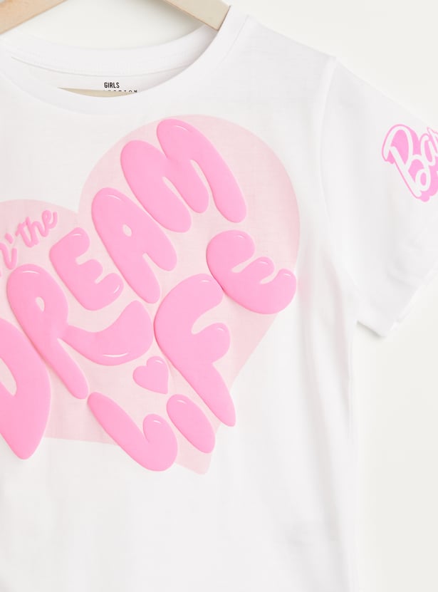 Juniors Barbie Embossed Print T-shirt