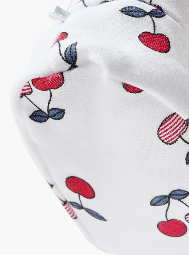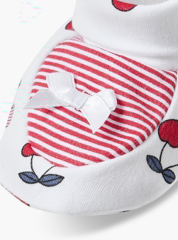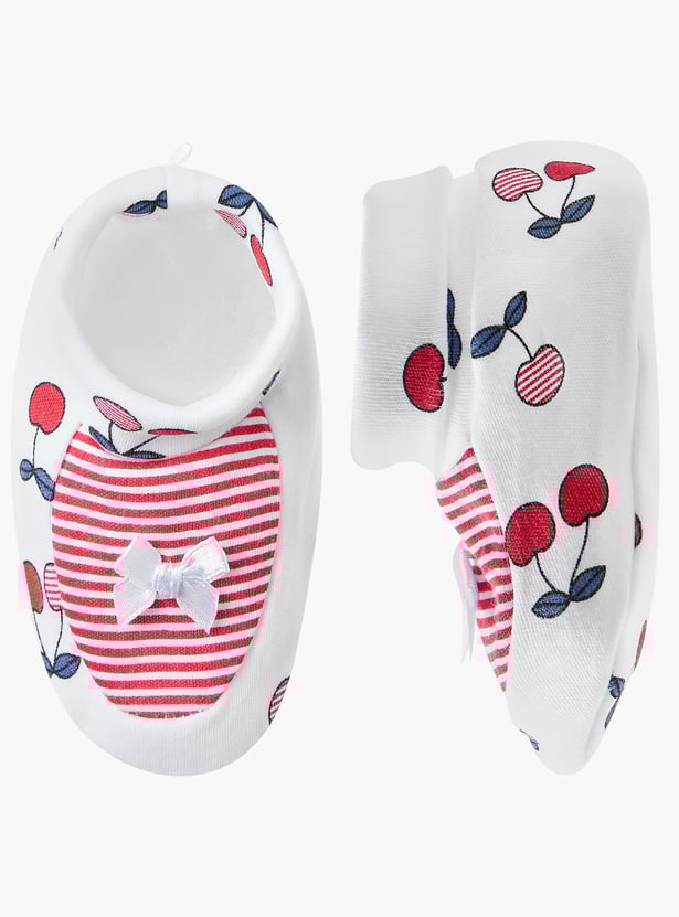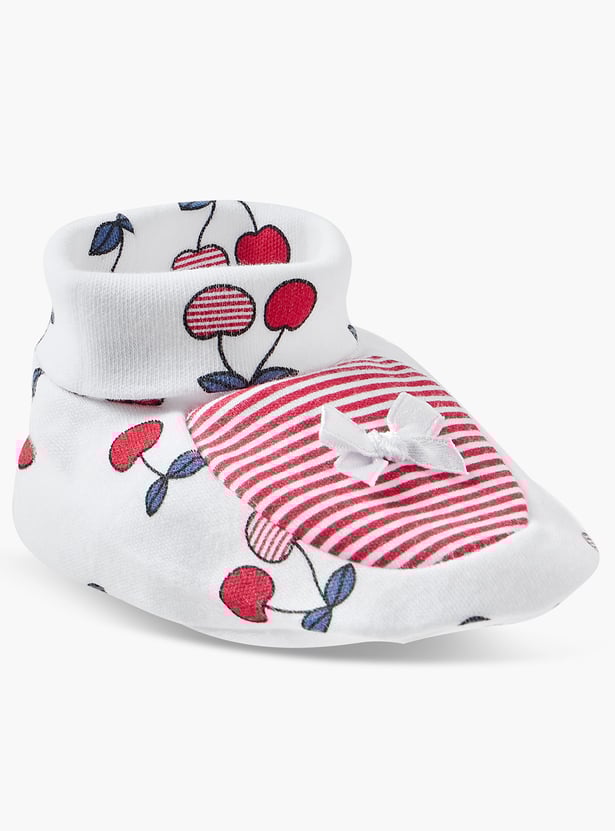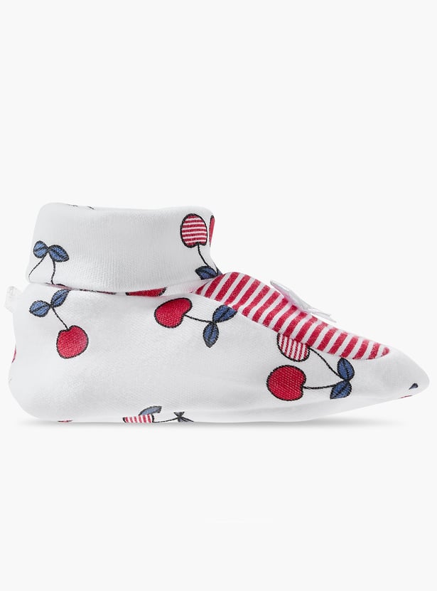 Juniors Cherry Print Booties with Bow Detail