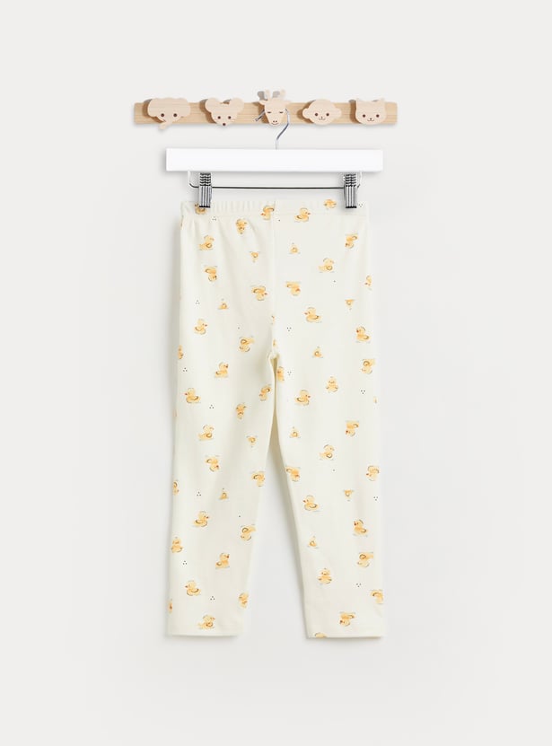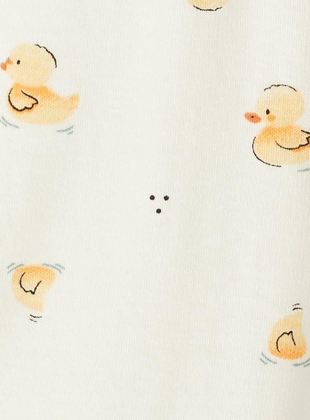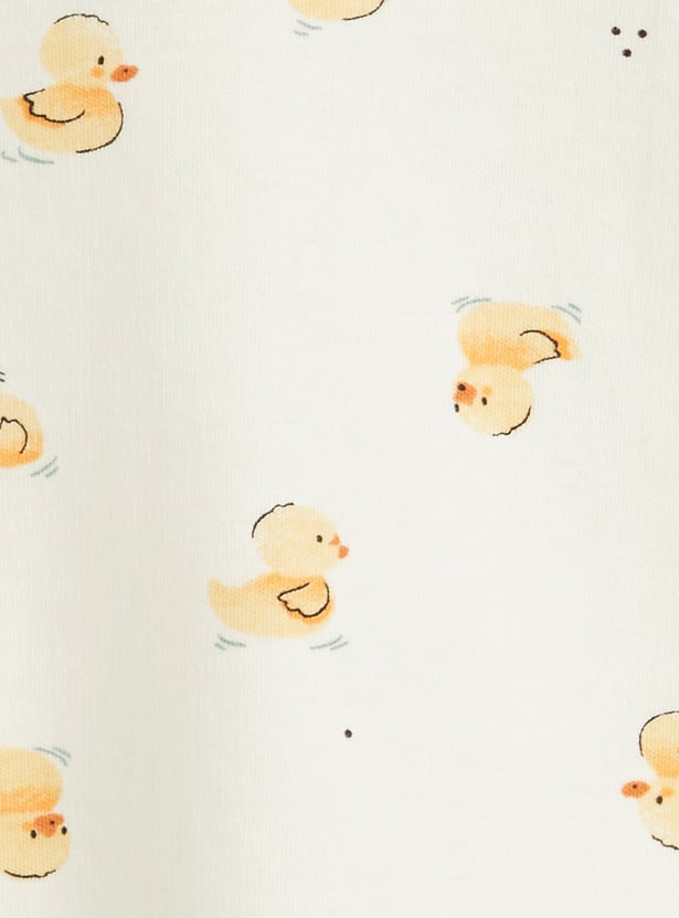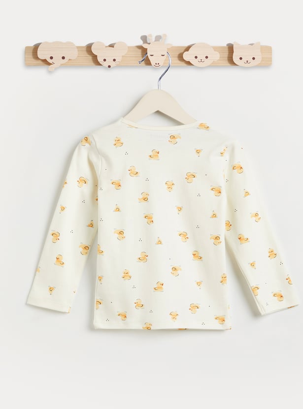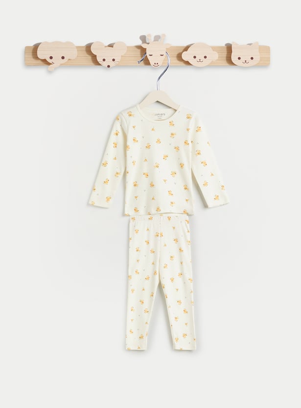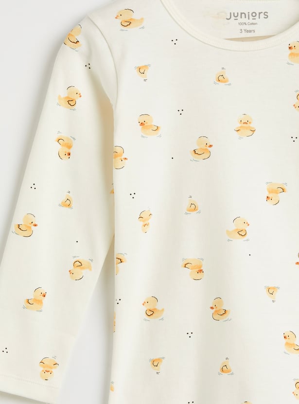 Bring bedtime fun to his wardrobe with this duck print T‑shirt, styled with a classic round neck and cosy full sleeves, paired with matching pyjamas featuring an elasticated waist — a playful set designed for all‑night comfort and style.