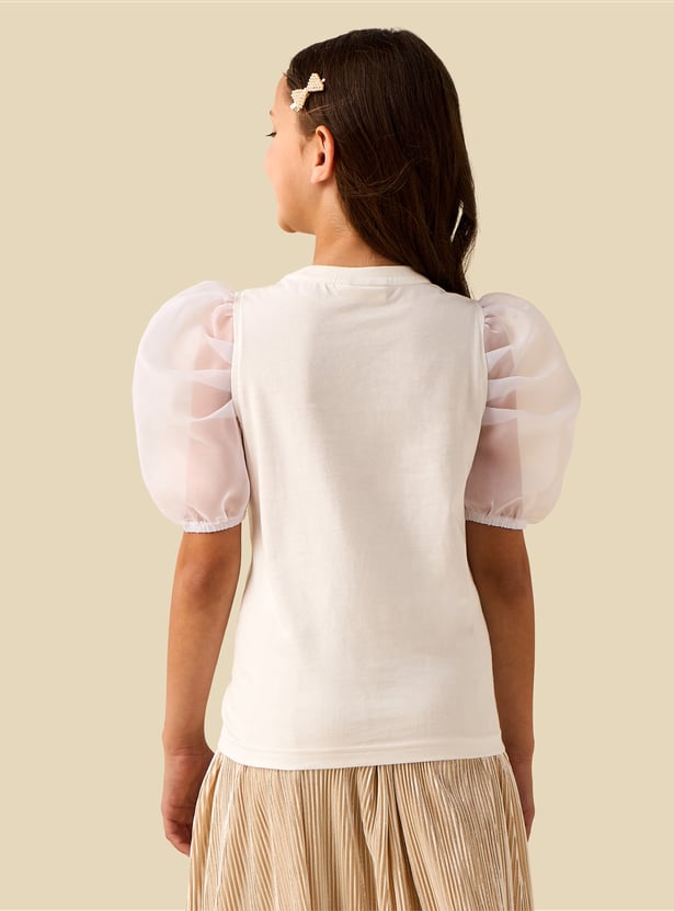 Juniors Embellished Puff Sleeve Top
