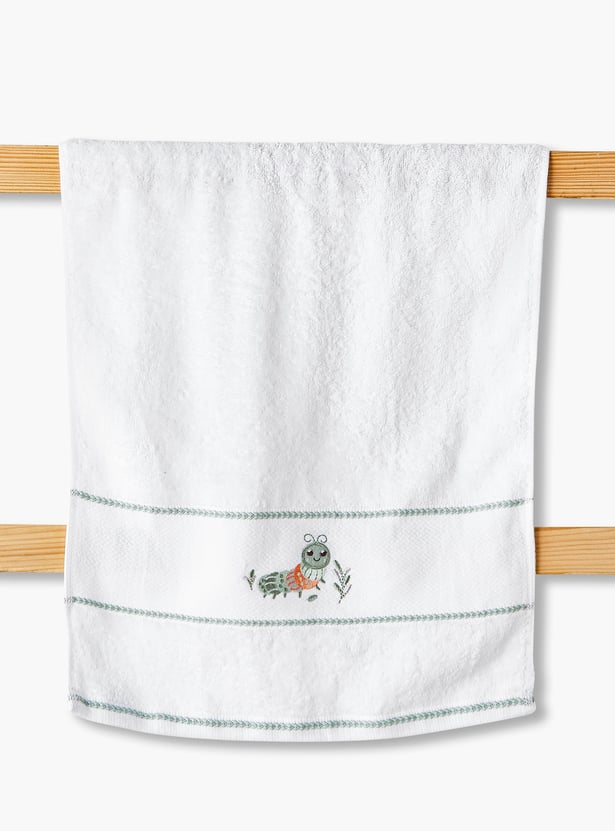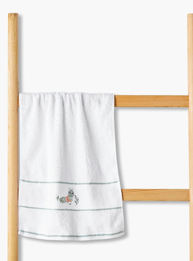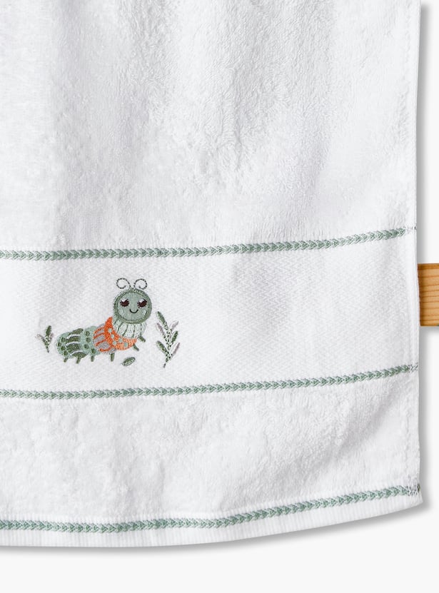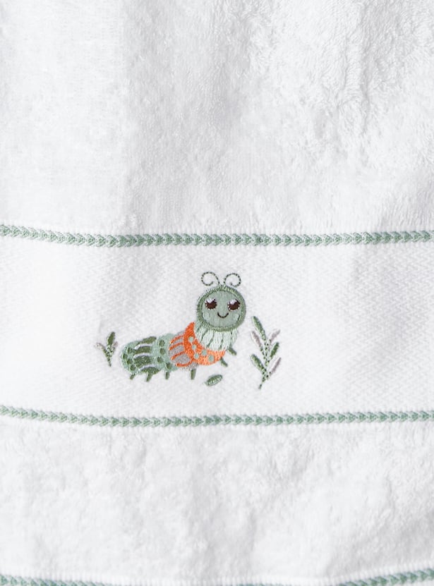 This charming bath towel features caterpillar embroidery, perfect for sensitive skin. The absorbent fabric ensures quick drying after bath time.