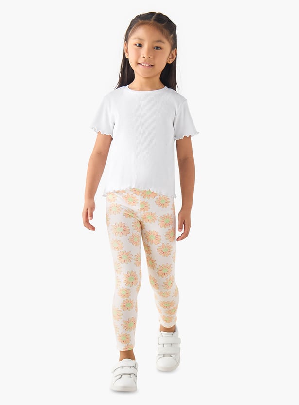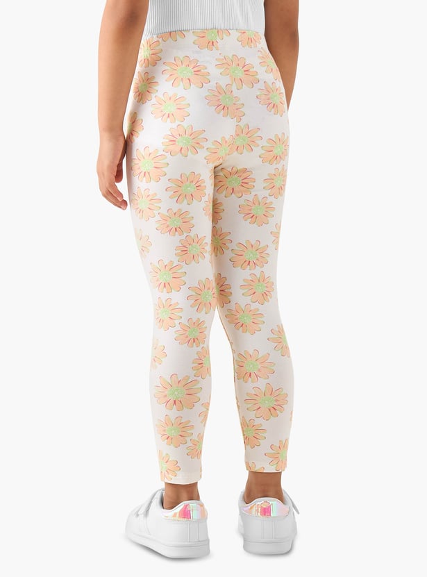 Add a touch of floral charm to her everyday wardrobe with these girls’ leggings, featuring an all-over floral print for a playful look. Designed with an elasticated waistband, they offer a comfortable, flexible fit that’s perfect for all-day wear. Crafted from soft, breathable fabric for gentle comfort on the skin.
