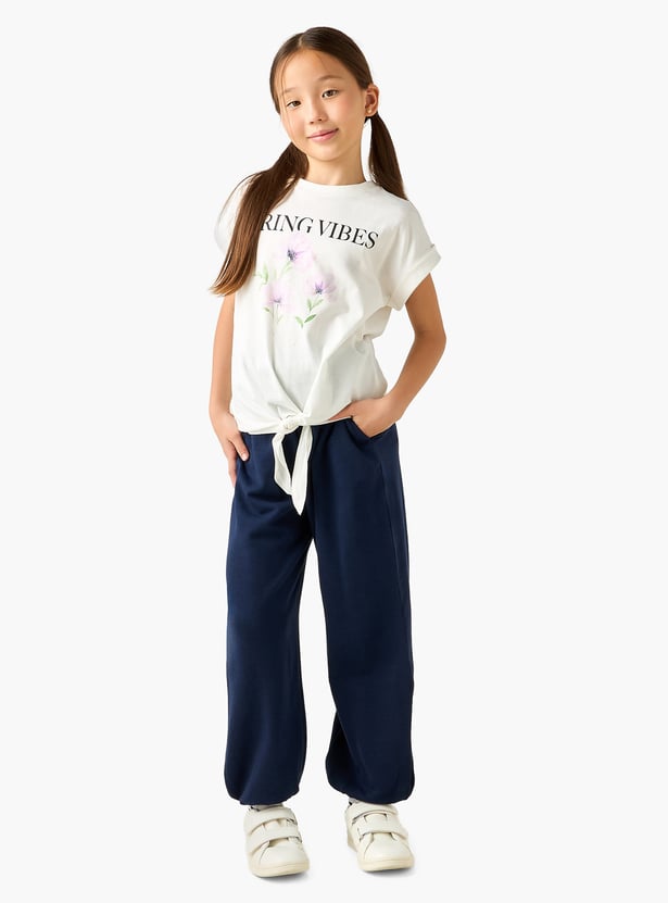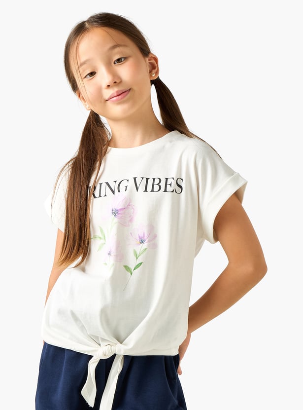 Brighten your little girl’s wardrobe with this charming graphic t-shirt, a versatile piece that combines style and comfort. Featuring a delightful floral print and playful text detailing, with round neck and half sleeves, it adds a touch of youthful charm to casual outings or relaxed days at home. Crafted from soft, breathable fabric, this t-shirt ensures all-day comfort and freedom of movement for endless fun and play.