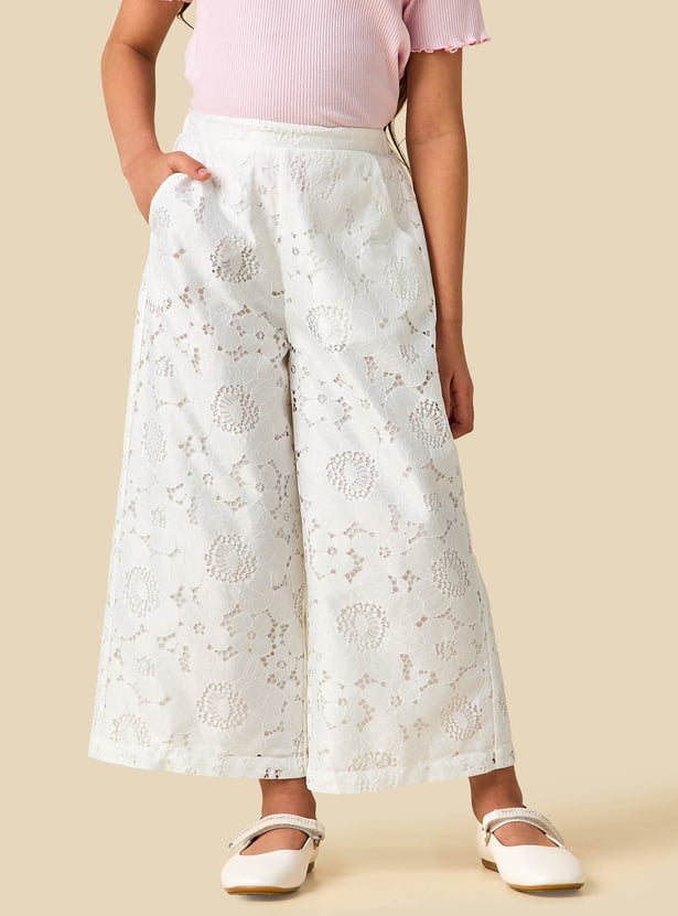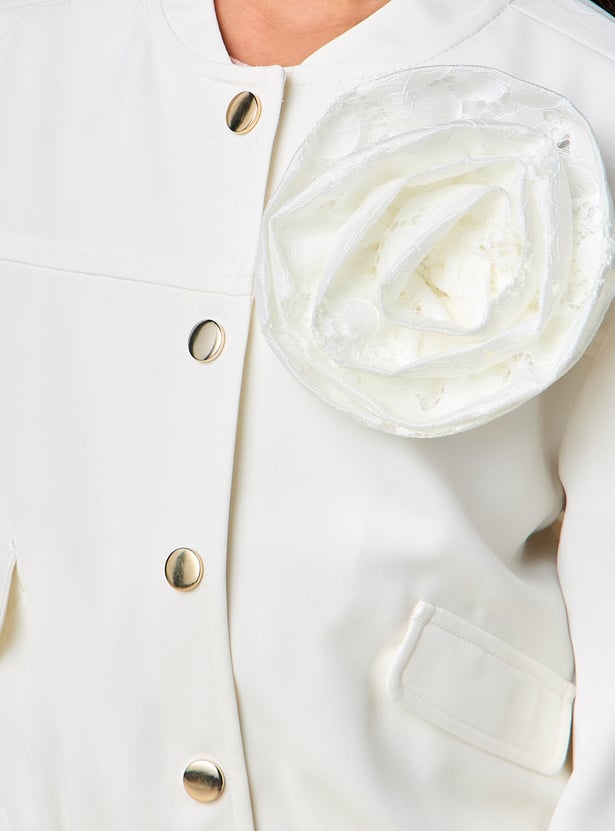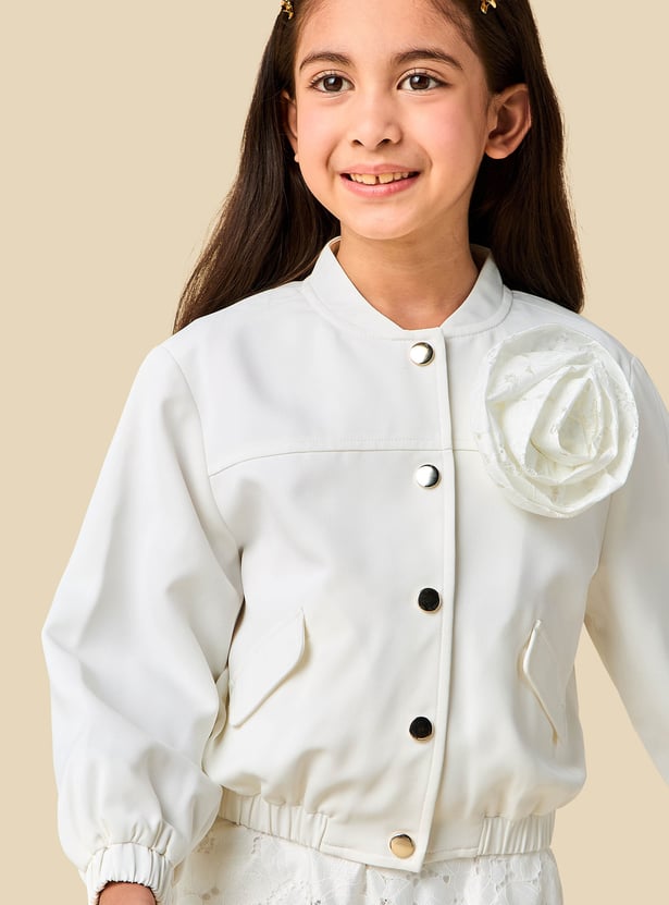 Juniors Flower Applique Jacket and Pants Set with Lace Detail