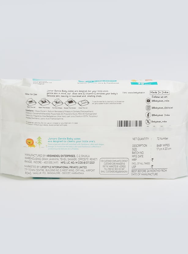 - Feature 1 : Junior Gentle Baby wipes are designed for your little one's gentle skin mind, our Aloe Vera & Vitamin E enriches your baby's delicate skin, leaving it nourished and smelling fresh.