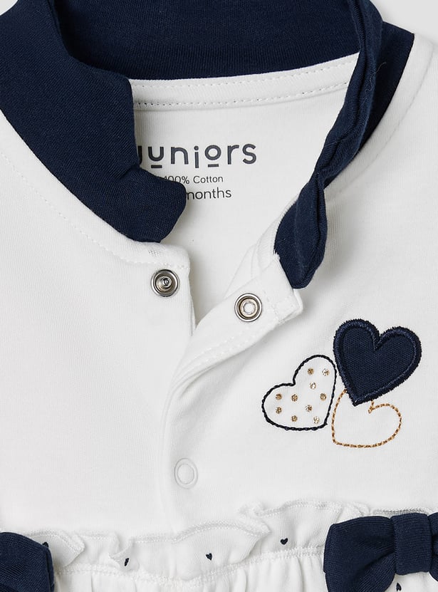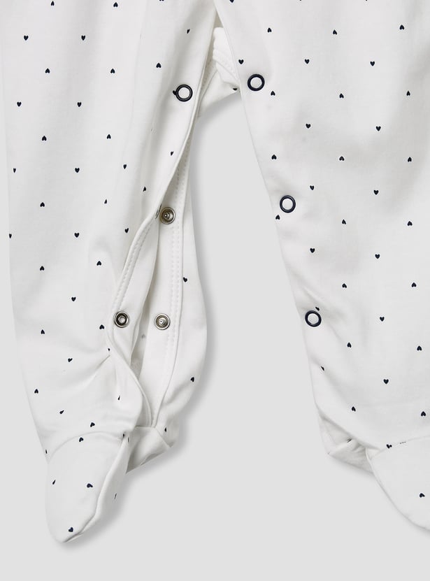 Juniors Heart Print Closed Feet Sleepsuit with Long Sleeves