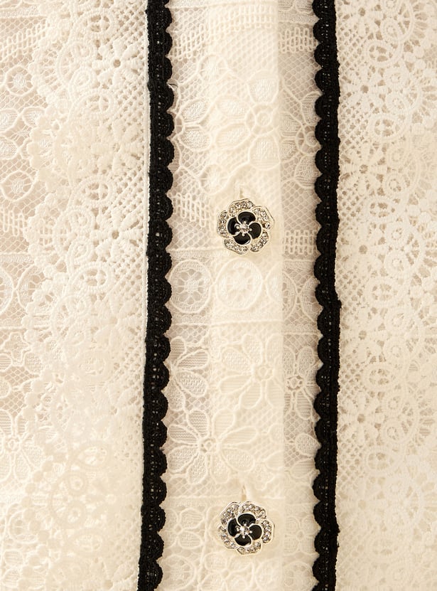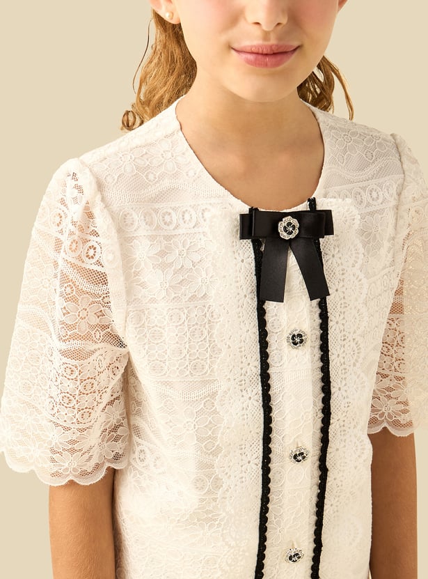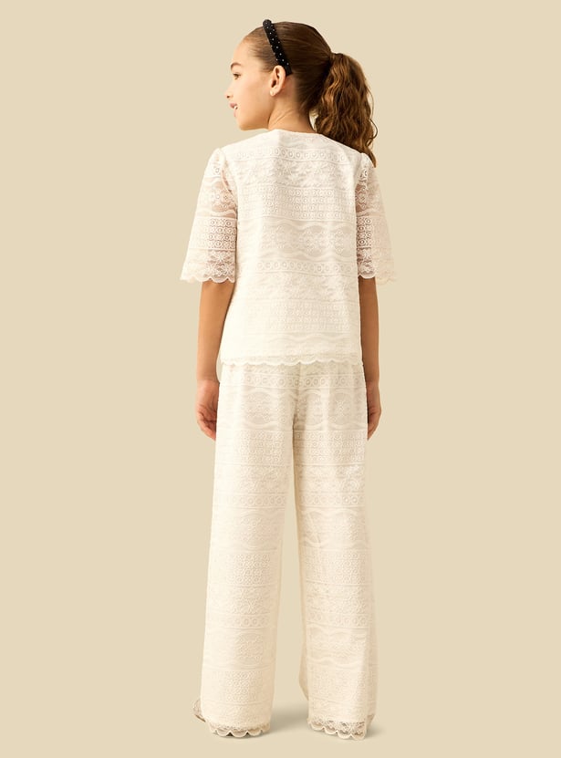 Juniors Lace Detail Shirt and Pants Set