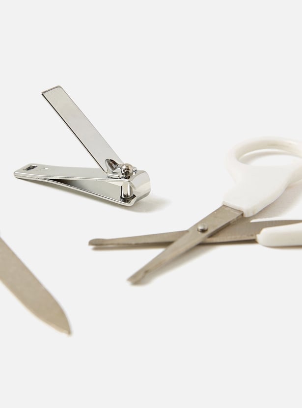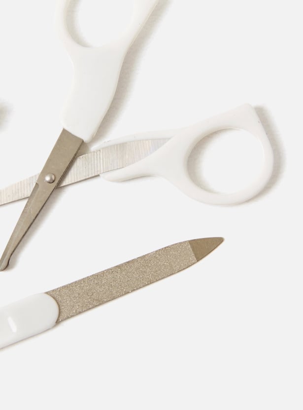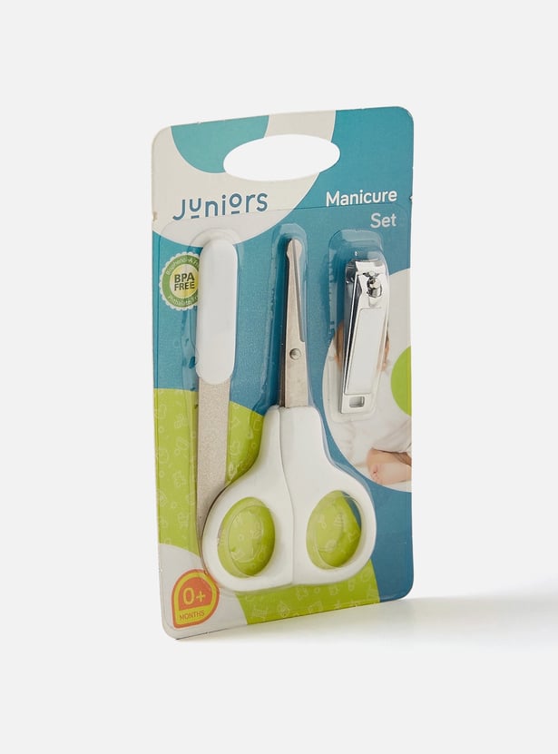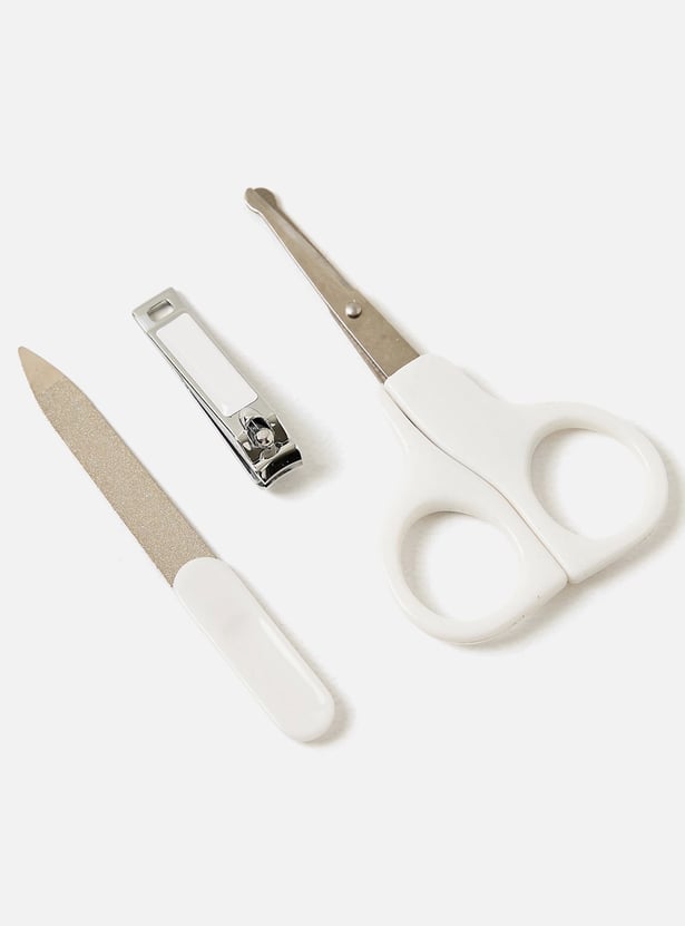 Keep your little angel's nails neatly groomed with the help of this manicure set. Featuring a pair of scissor and a clipper with rounded edge in addition to the file, this set ensures easy trimming of nails.