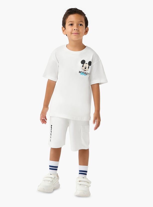 Juniors Mickey Mouse Print T-shirt and Cargo Shorts Set