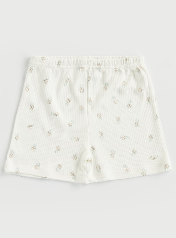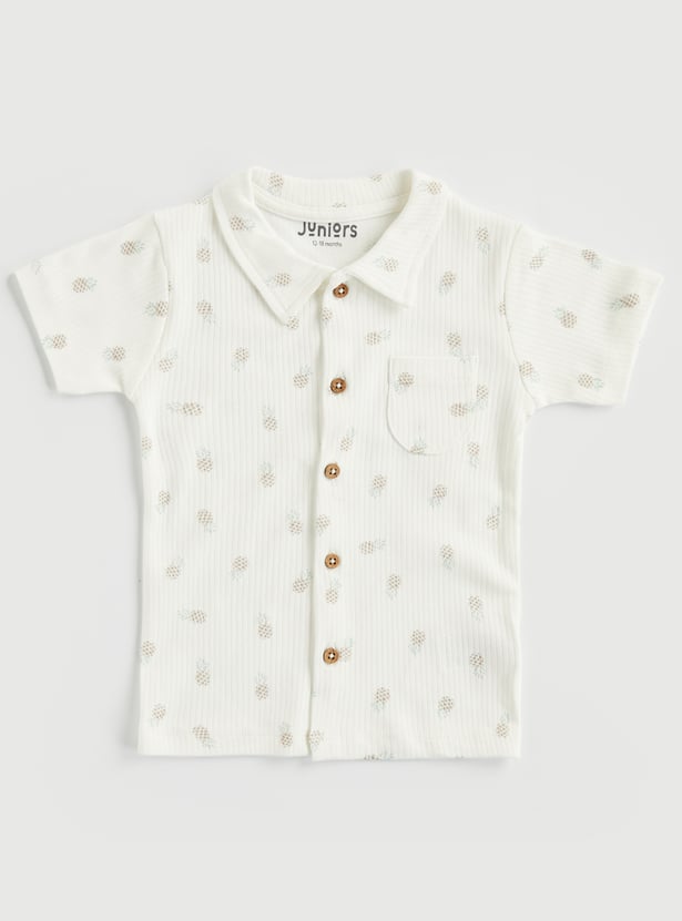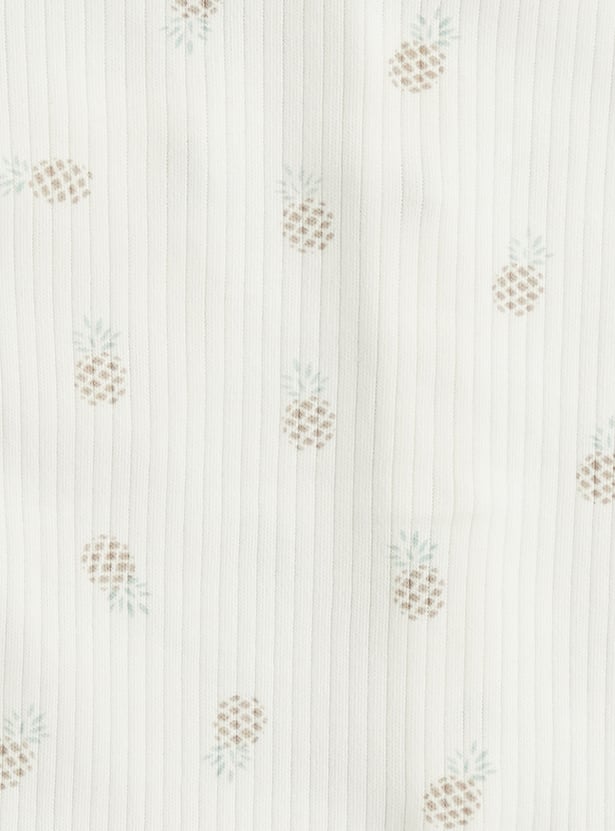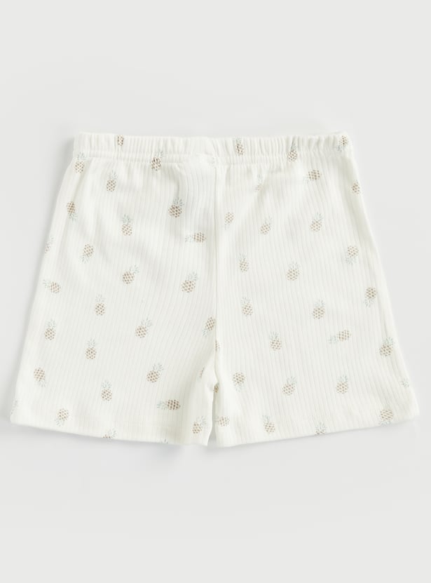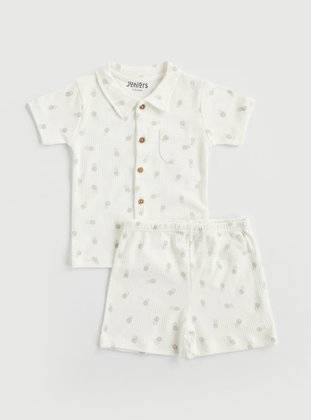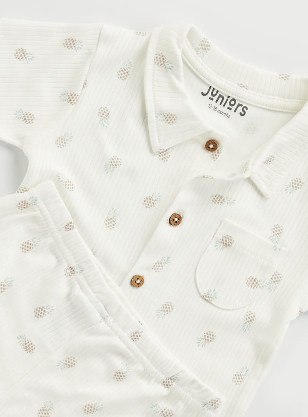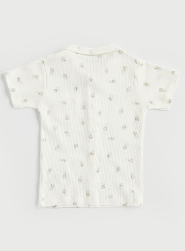 Brighten her day with this knit set featuring pineapple motifs. The shirt has a spread collar, half sleeves, and a chest pocket. The matching short feature elasticated waist. Crafted in soft fabric to ensure all-day comfort.