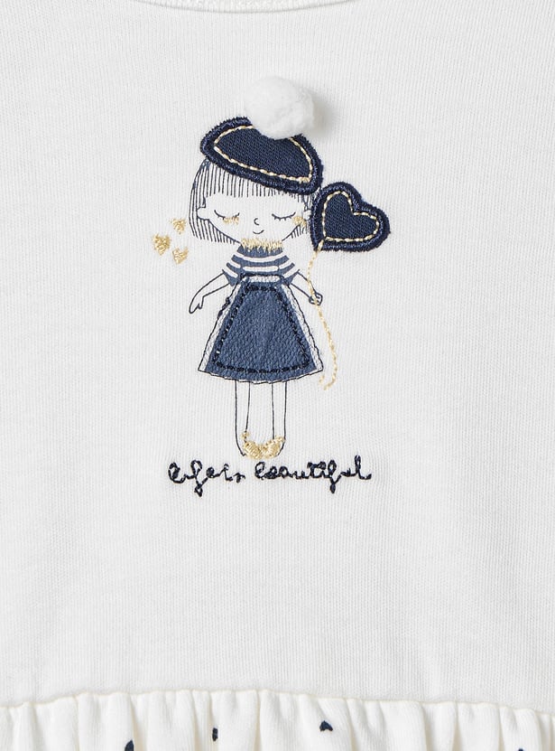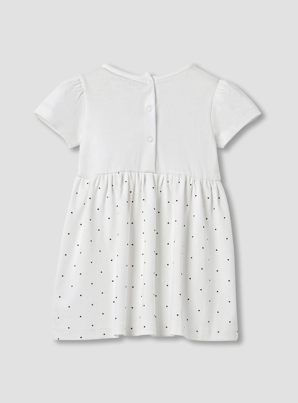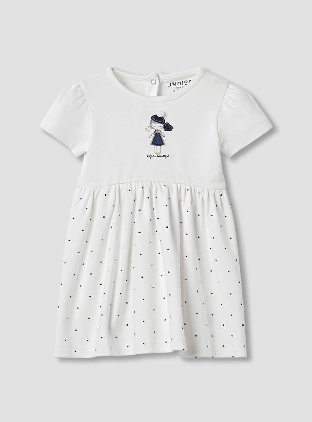 This charming knit dress for girls features a delightful heart print and a comfortable fit, perfect for everyday wear. The soft, breathable knit fabric ensures lasting comfort, while the adorable print adds a touch of whimsy. This embroidered detail dress is easy to care for and ideal for playtime or special occasions.