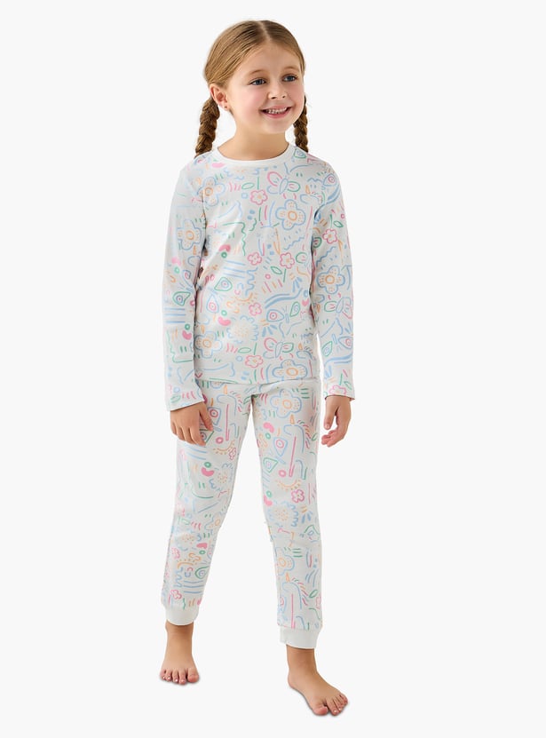 Ensure a comfortable night's sleep for your little one with this charming girls' joggers set. Crafted from soft, breathable fabric, this two-piece ensemble features a delightful all-over print, adding a playful touch to bedtime. The long-sleeve top and matching full-length joggers provide complete coverage, perfect for cooler evenings. This jogger set is an essential addition to any young girl's sleepwear collection, offering both comfort and style.