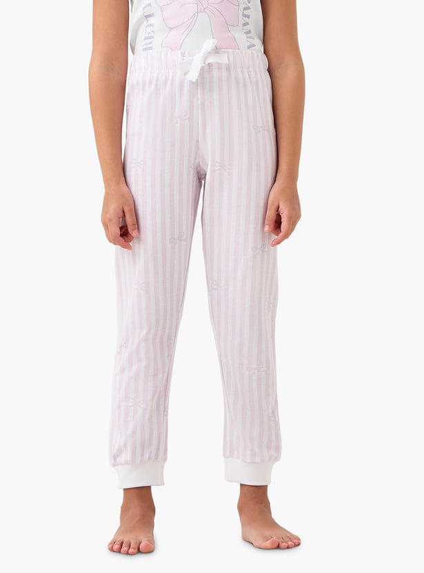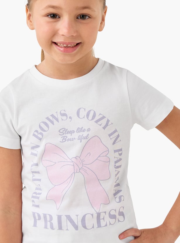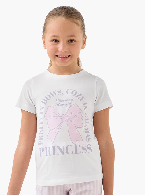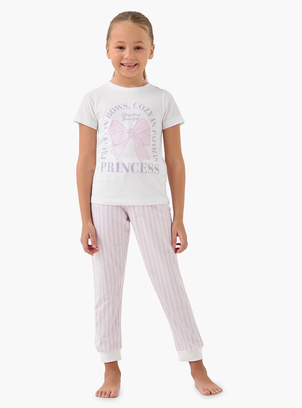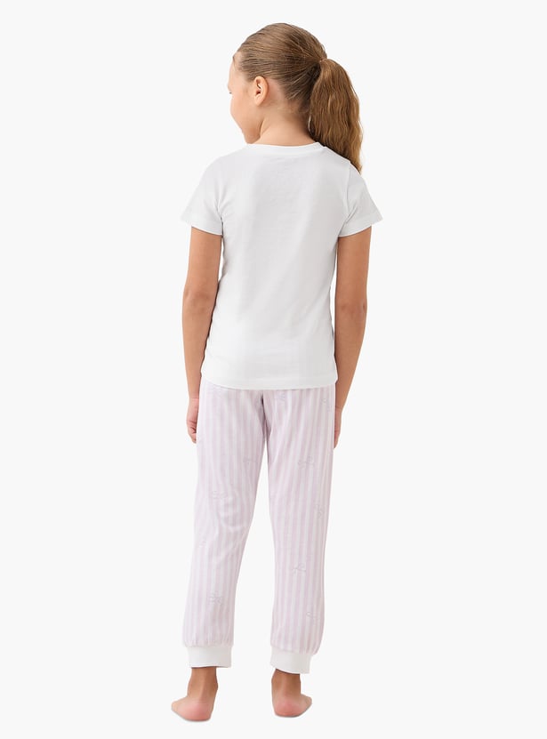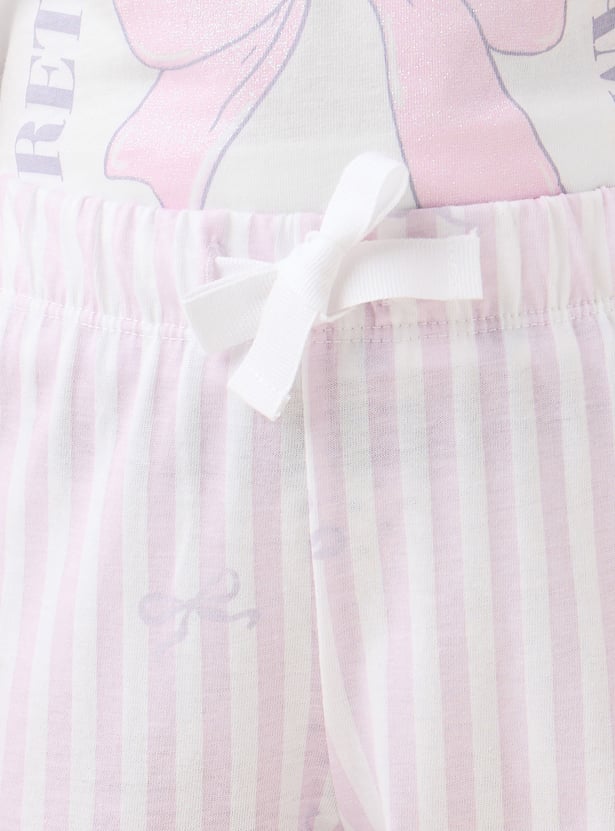 Juniors Printed T-shirt and Striped Pyjama Set