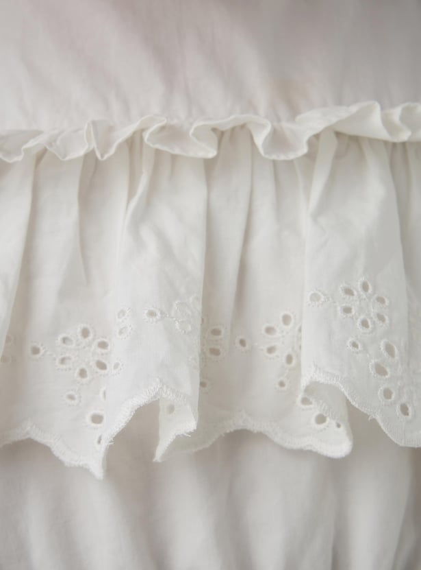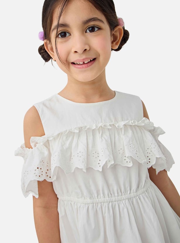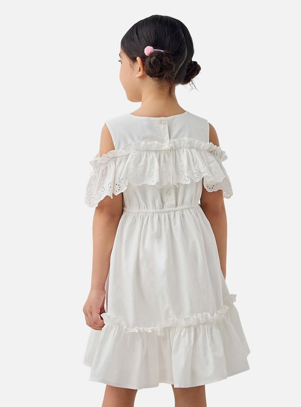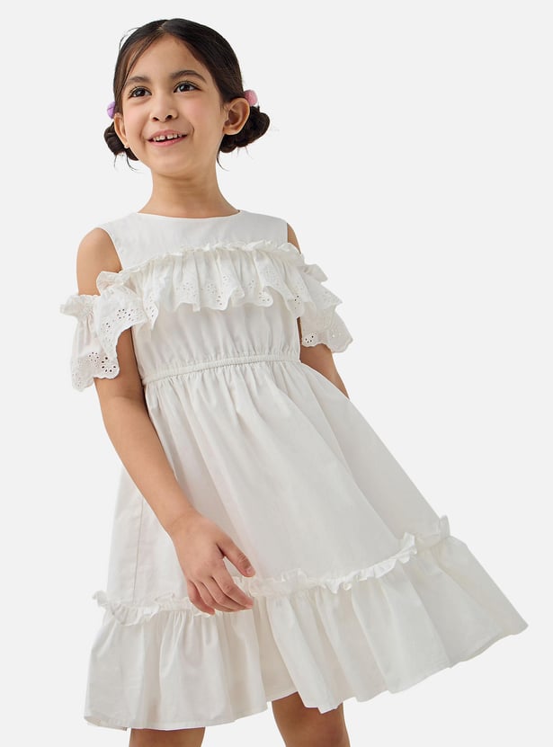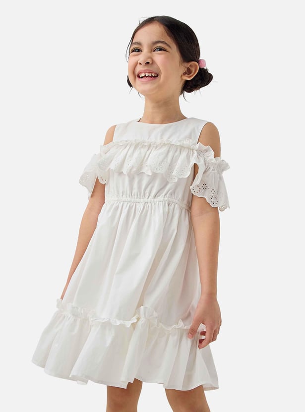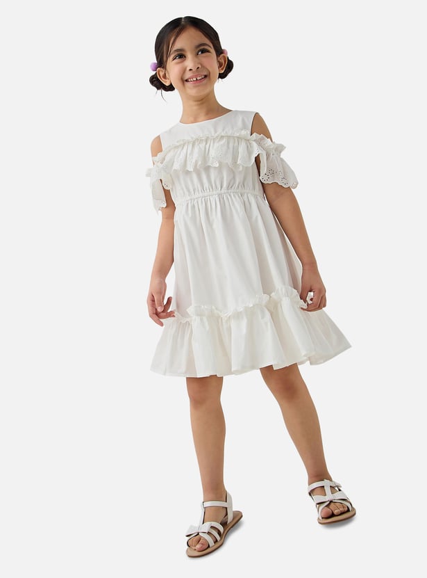 Juniors Ruffle Detail Cold Shoulder Dress with Round Neck