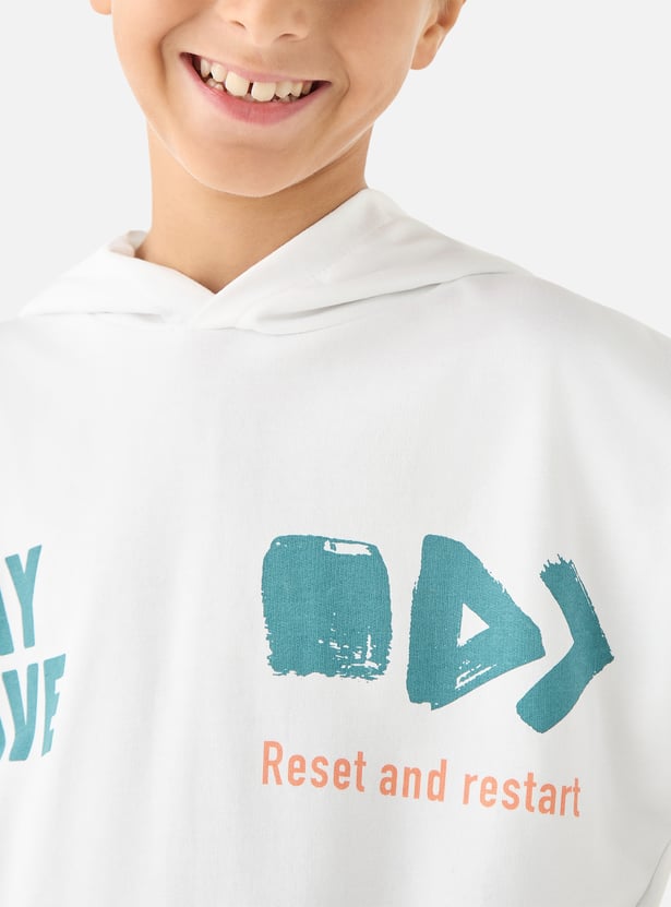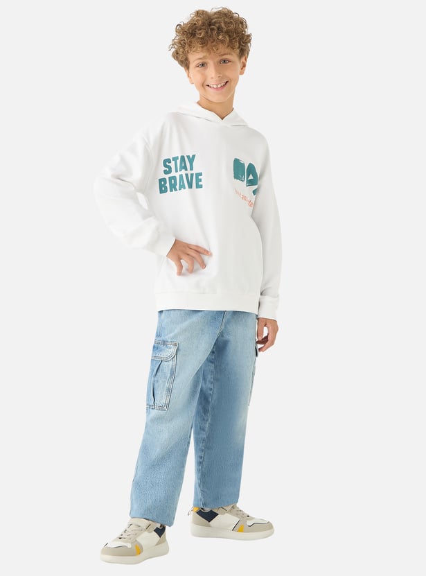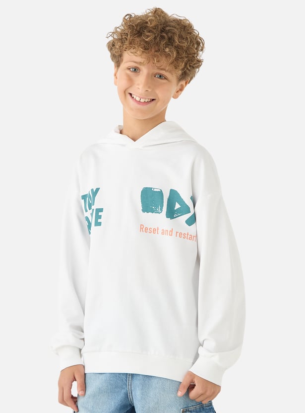This sweatshirt is perfect for active boys who love to stay comfortable. Made from pure fabric, it's soft and breathable, ensuring all-day comfort. The hooded design and long sleeves provide extra warmth and protection from the elements. With its classic style and regular fit, this sweatshirt is a versatile addition to any boy's wardrobe.