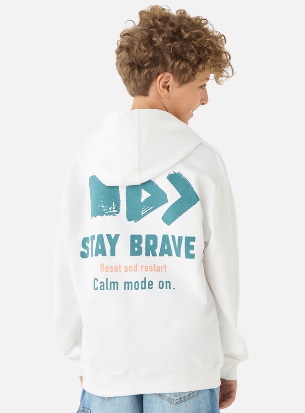 Juniors Slogan Print Hooded Long Sleeves Sweatshirt