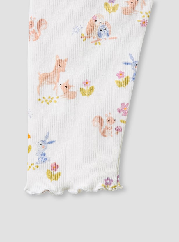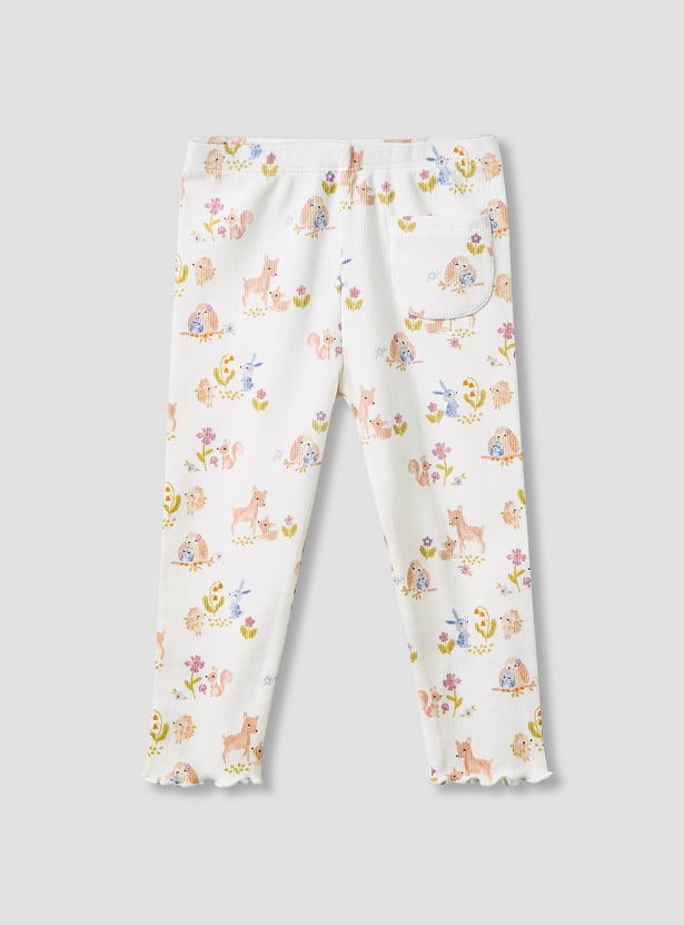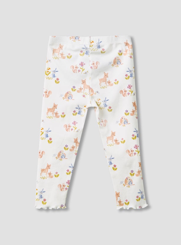 Introduce delightful style to your little one's wardrobe with these charming wild animal print leggings. Crafted from soft, ribbed fabric, these leggings ensure comfort and flexibility for active play. The elasticated waist provides a secure yet gentle fit, making them perfect for everyday wear.