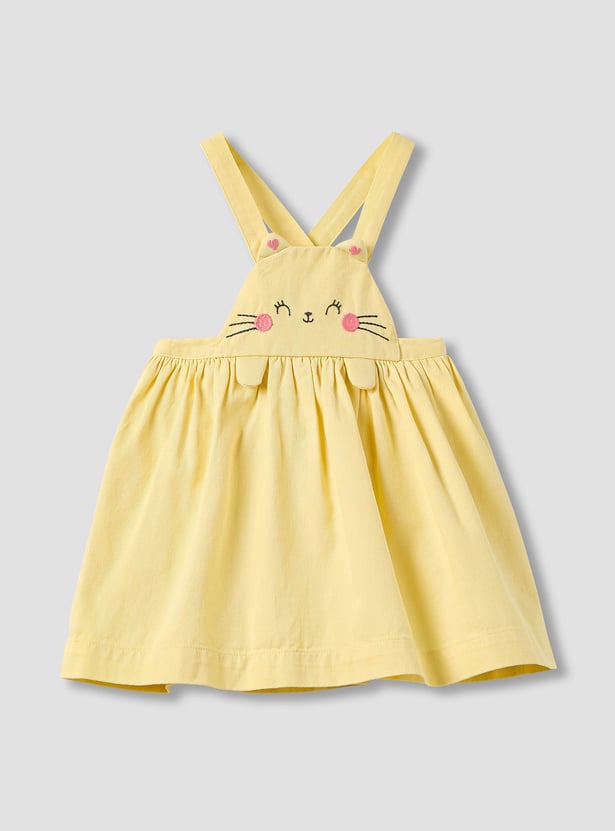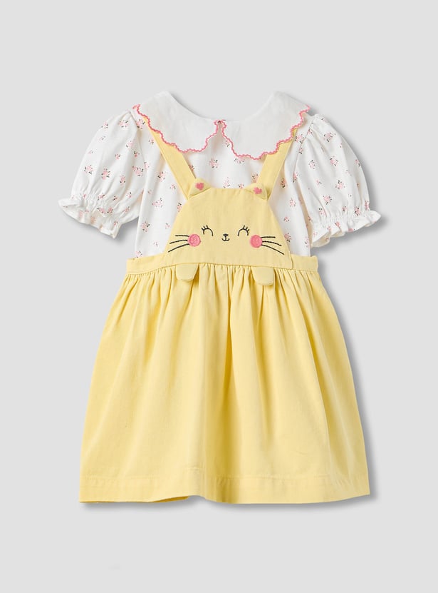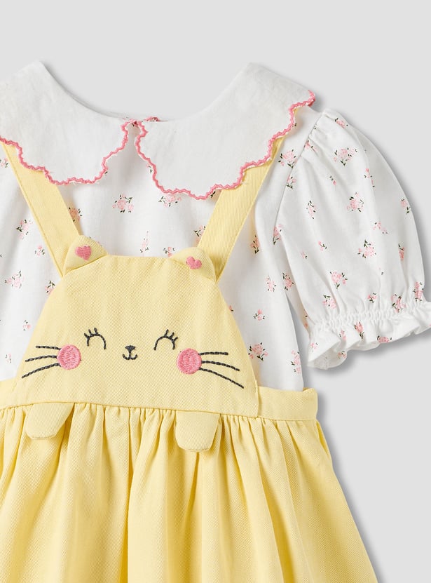 Juniors Cat Embroidered Pinafore Dress and Collared Top Set