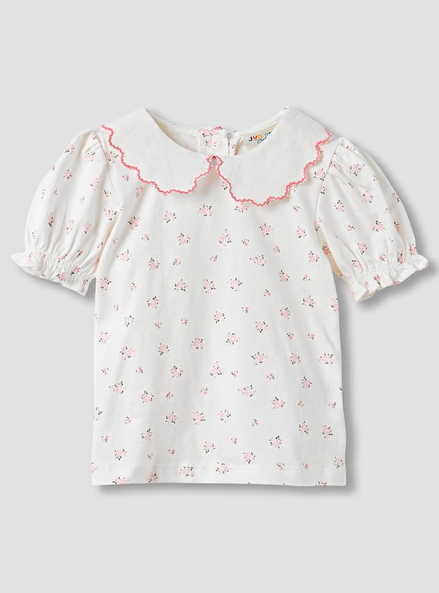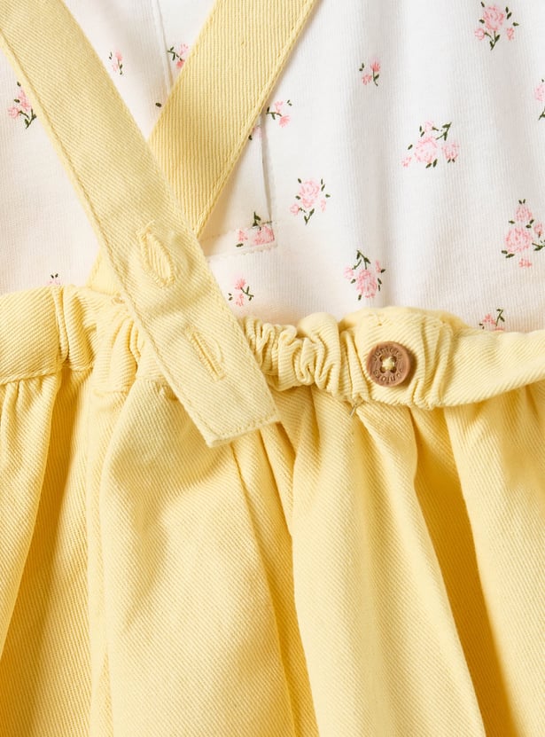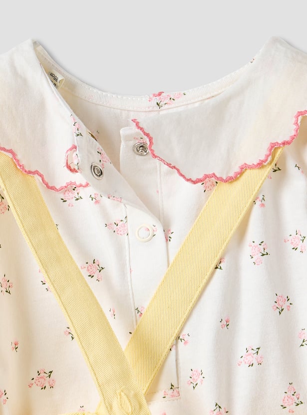 This adorable set features a cat-embroidered pinafore dress paired with a floral print top, perfect for your baby girl. The pinafore dress is designed with charming cross-back straps and delicate embroidery for a playful look. The top showcases a Peter Pan collar and puff sleeves, adding a touch of vintage elegance. Crafted from soft, breathable fabric for all-day comfort. A delightful outfit for outings and special moments.