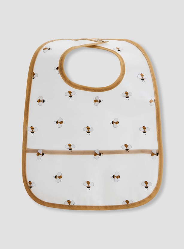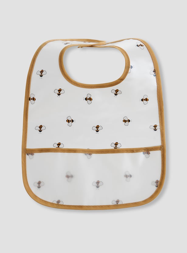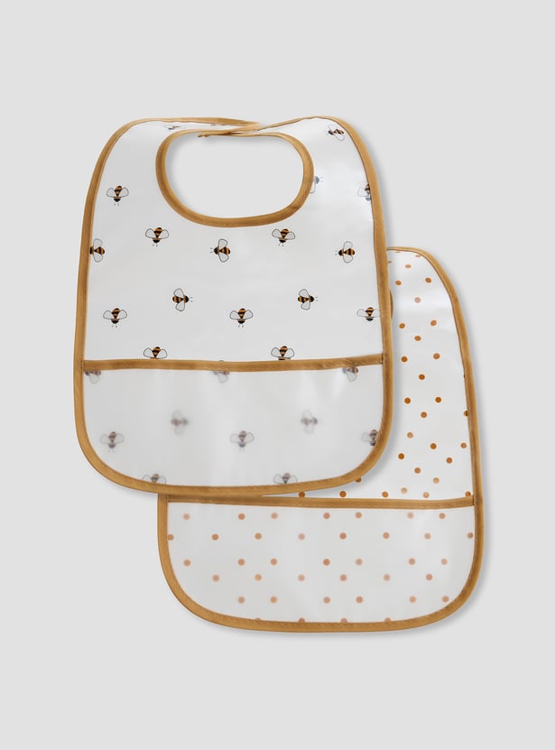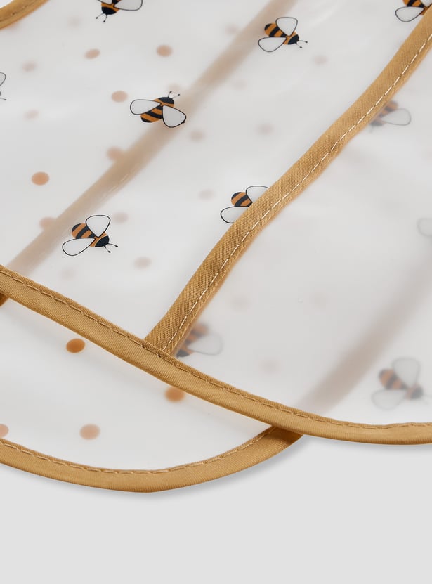 Protect your baby's clothes with this practical pack of bibs. These waterproof bibs feature a convenient crumb-catching pocket and a charming bee print. The material makes cleaning effortless, while the soft trim ensures comfort. This bib two-pack is a must-have for mealtimes.