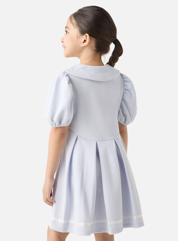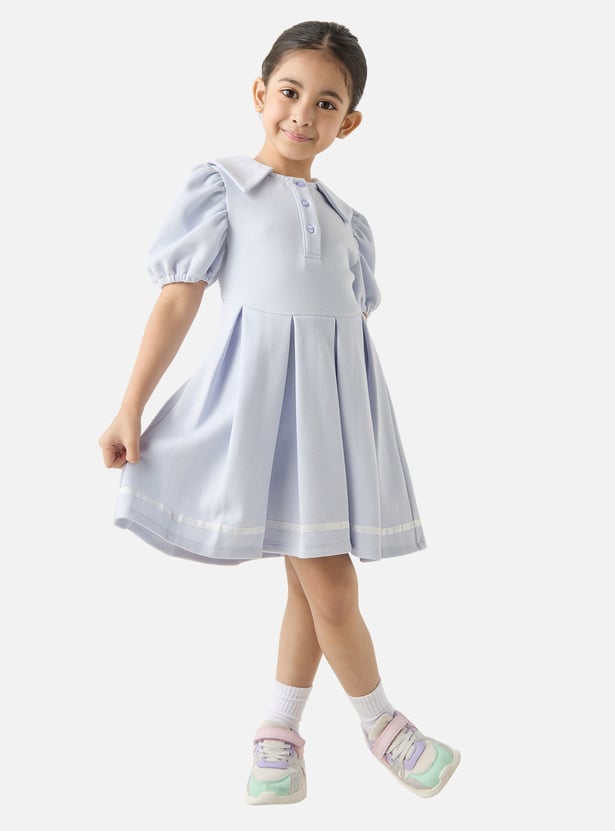 This charming tennis dress is a must-have for your little fashionista's wardrobe. Designed with puff sleeves and intricate pleat detailing, this dress is perfect for any outdoor occasion. The solid colour adds to its versatility, making it easy to pair with a variety of accessories. It is finished with a collared neck, half-buttoned placket and cinched waist, adding a modest touch.