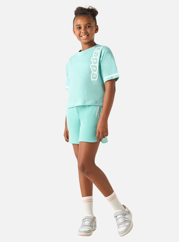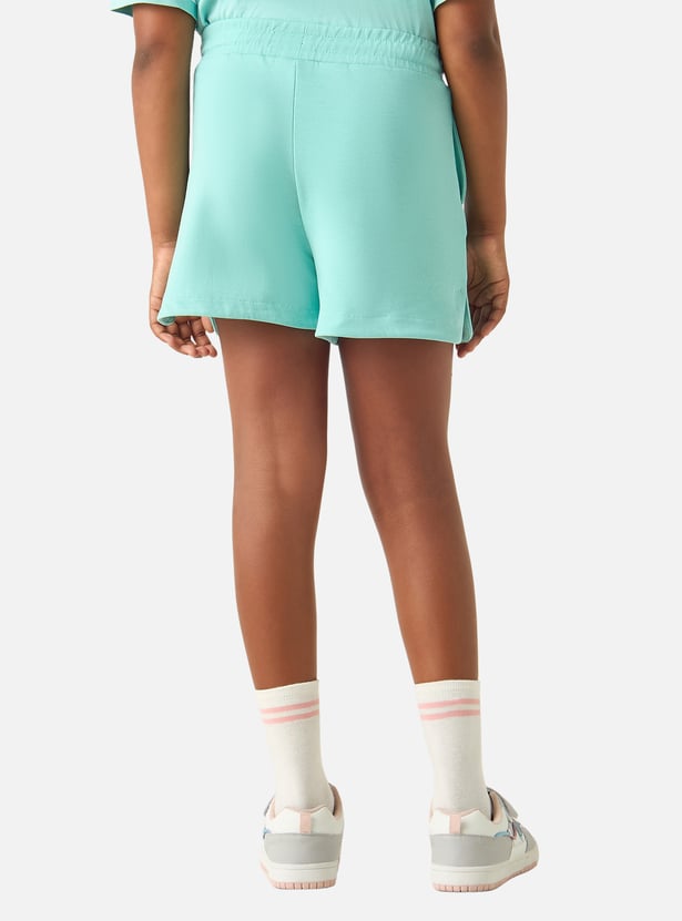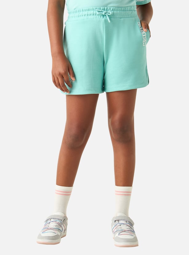 These shorts are a sporty addition to your daughter's wardrobe. Made from quality material, these solid-toned shorts provide flexibility and comfort. The drawstring closure and pockets add a touch of style and functionality. It is apt for playdates or any sports events.