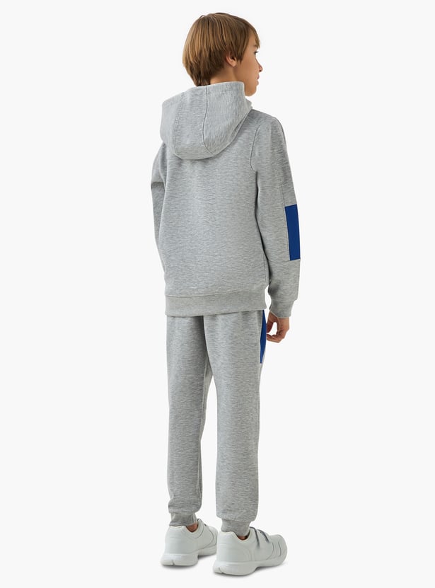 Bring sporty style and everyday comfort to your little one's wardrobe with this set. The hoodie features a bold logo print and a relaxed fit, while the joggers include convenient pockets for carrying small essentials. Crafted from soft, breathable fabric, the set is perfect for active days or laid-back moments. The coordinated look offers effortless style with a modern edge. A versatile must-have for casual outings and beyond.