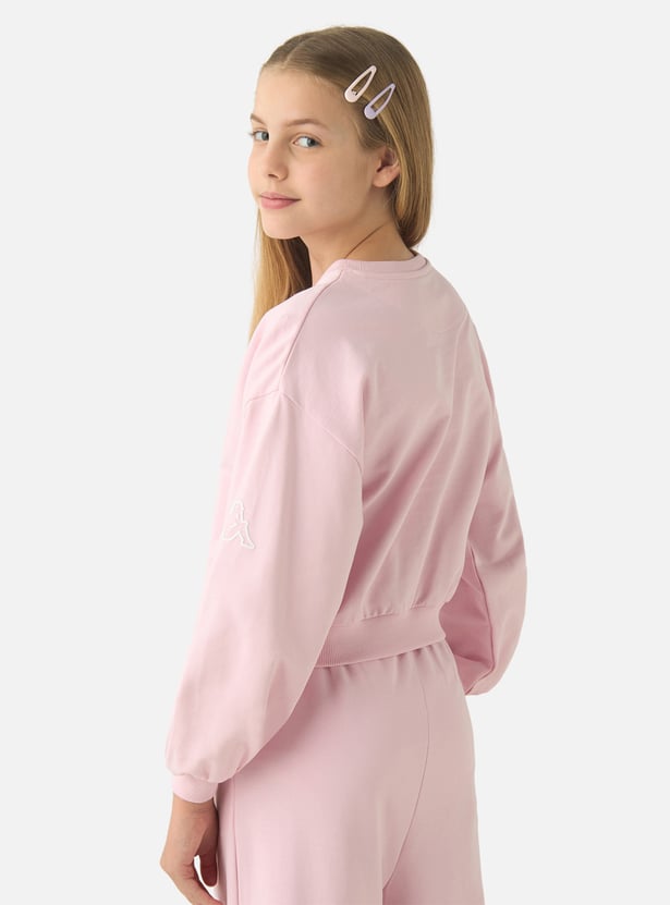 This sweatshirt is a must-have for your sporty one. Crafted from soft fabric, it ensures utmost comfort all day. Designed with long sleeves, it offers optimum coverage, while the regular fit allows for ease of movement. Perfect for any sports activity or casual day out, this pullover will make your little one look and feel her best.